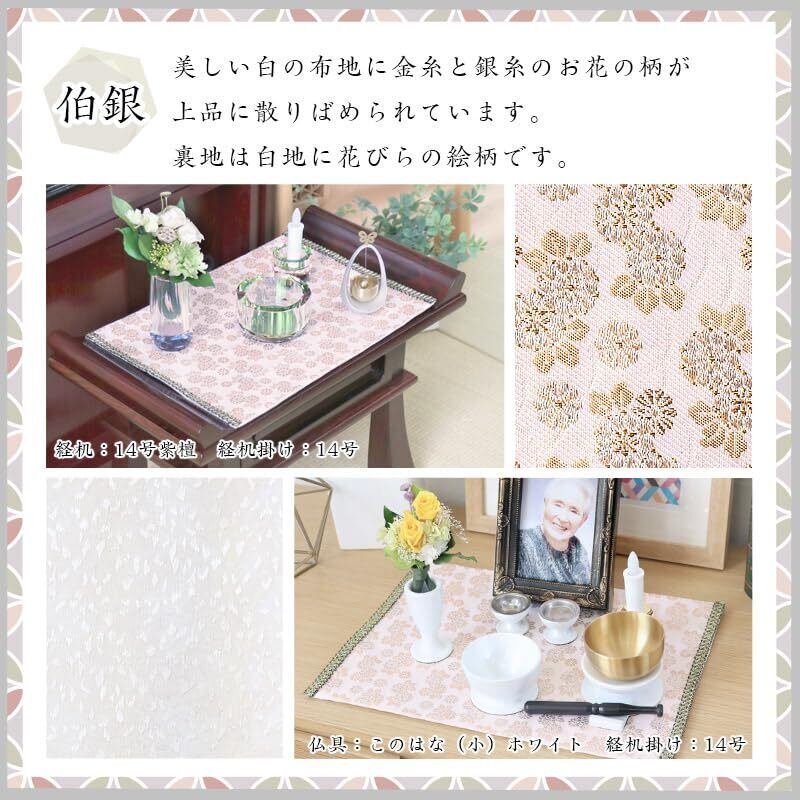 なーむくまちゃん工房 花柄 経机掛け 金襴敷物 防炎加工 1尺8寸用 サイズ28cmx43.5cm (18号, 005.伯銀)