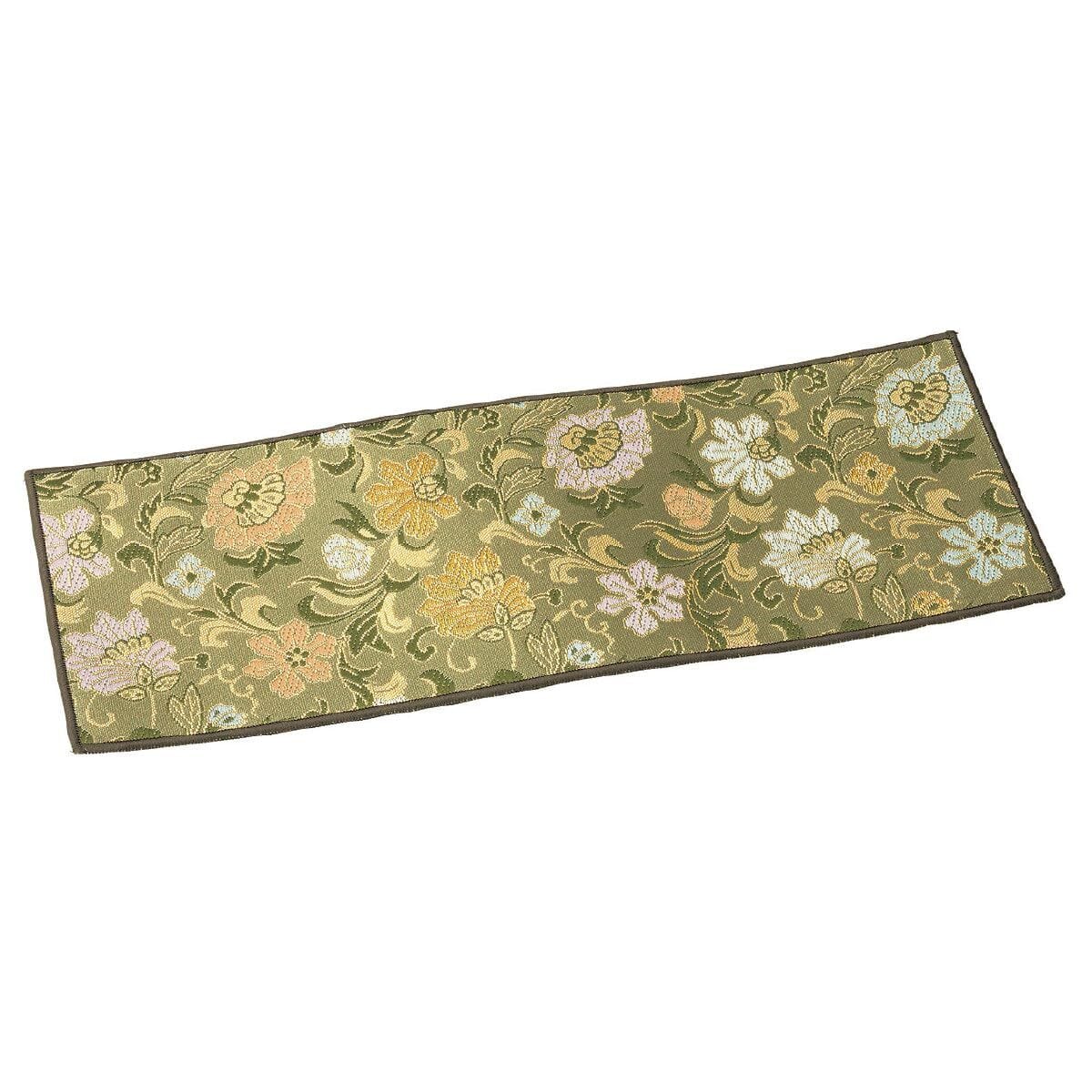 【デザインと外観】金蘭織り特有の光沢と花の模様が、仏壇まわりを荘厳に彩ります。織物ならではの深い味わいで、経年での色褪せを抑えています。経机敷/経机掛け/経机マットとして、和の趣きを大切にした仏具用敷物です。