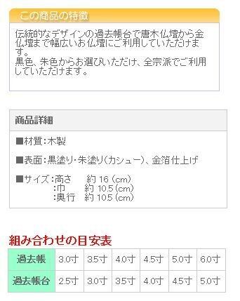 伝統的なデザインの過去帳台で唐木仏壇から金仏壇まで幅広いお仏壇にご利用していただけます。 黒色、朱色からお選びいただけ、全宗派でご利用していただけます。