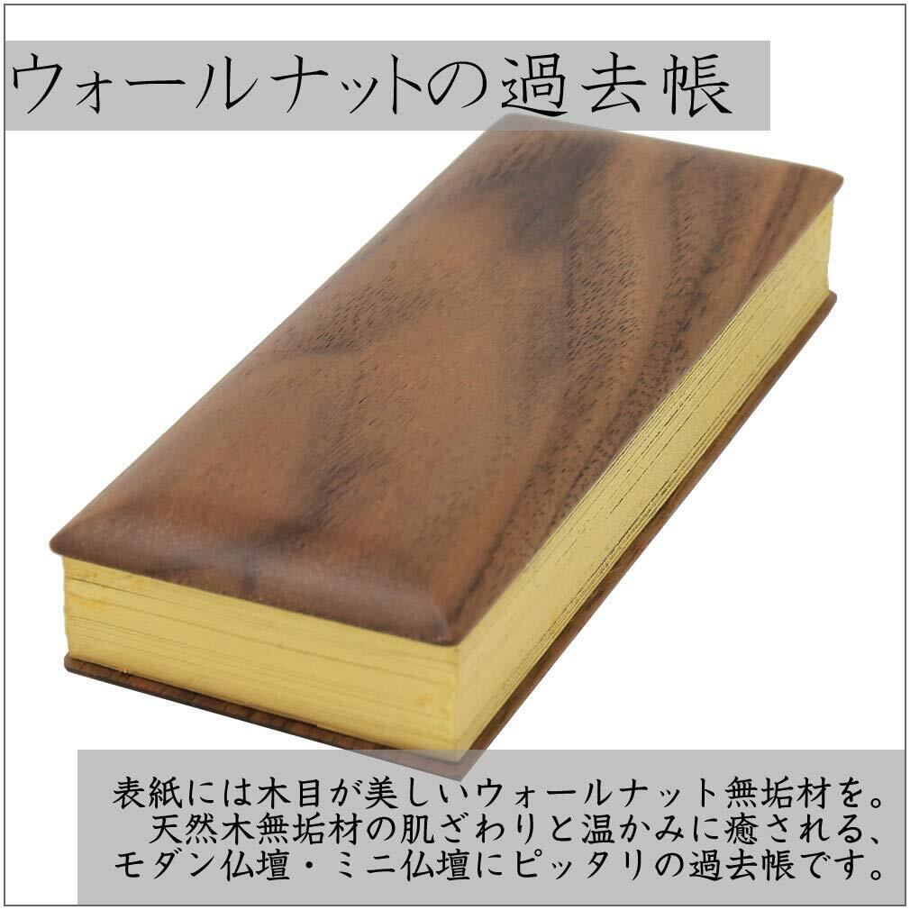 【ウォールナットの過去帳】表紙には木目が美しいウォールナット無垢材を。天然木無垢材の肌ざわりと温かみに癒される、モダン仏壇・ミニ仏壇にピッタリの過去帳です。
