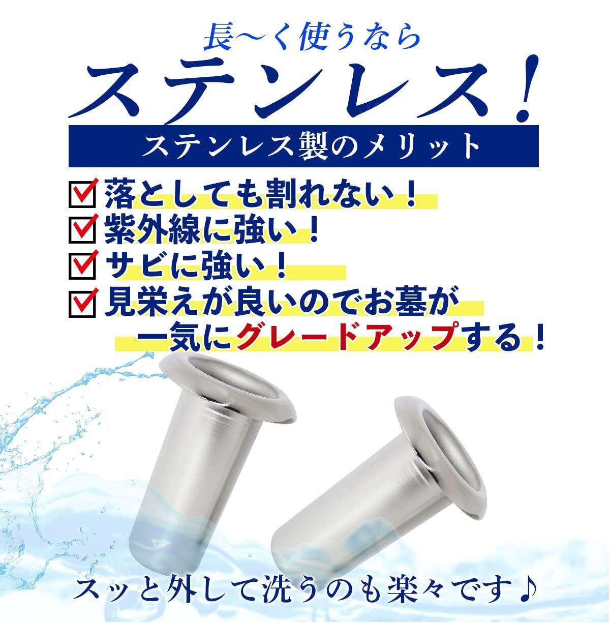 お墓の花立てに差し込むだけで、お墓をグレードアップします。取り外せるので、お掃除楽チン。ステンレス製なのでサビません。深さがありるので、大きなお花もしっかりお供えでいます。