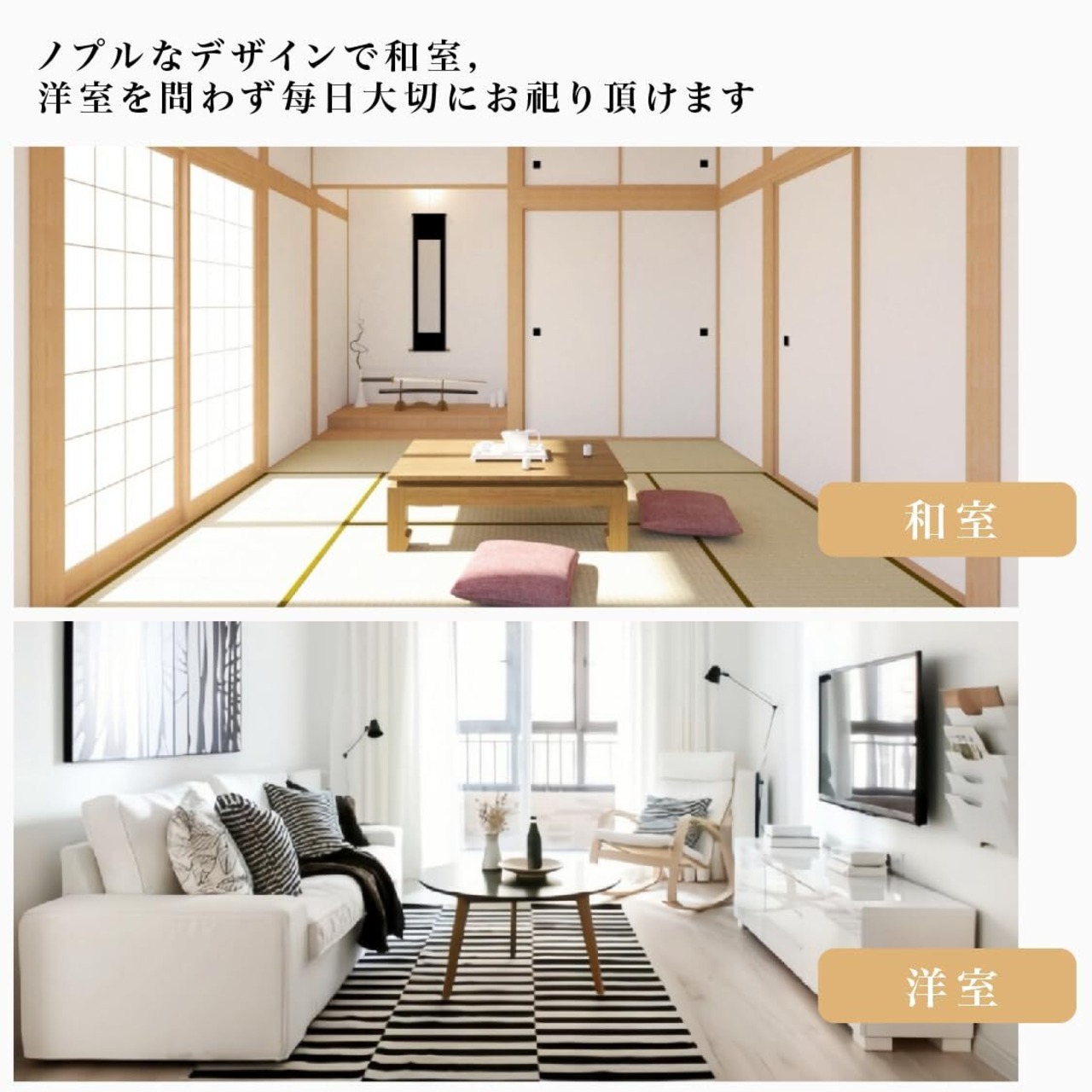 モダンなデザインと高品質な素材:当社の神棚はモダンなデザインと高品質な素材を使用しています。お部屋に合ったスタイリッシュなデザインと耐久性のある素材で、長期間ご利用いただけます。私たちは絶対的に天然の木材を使用しています。