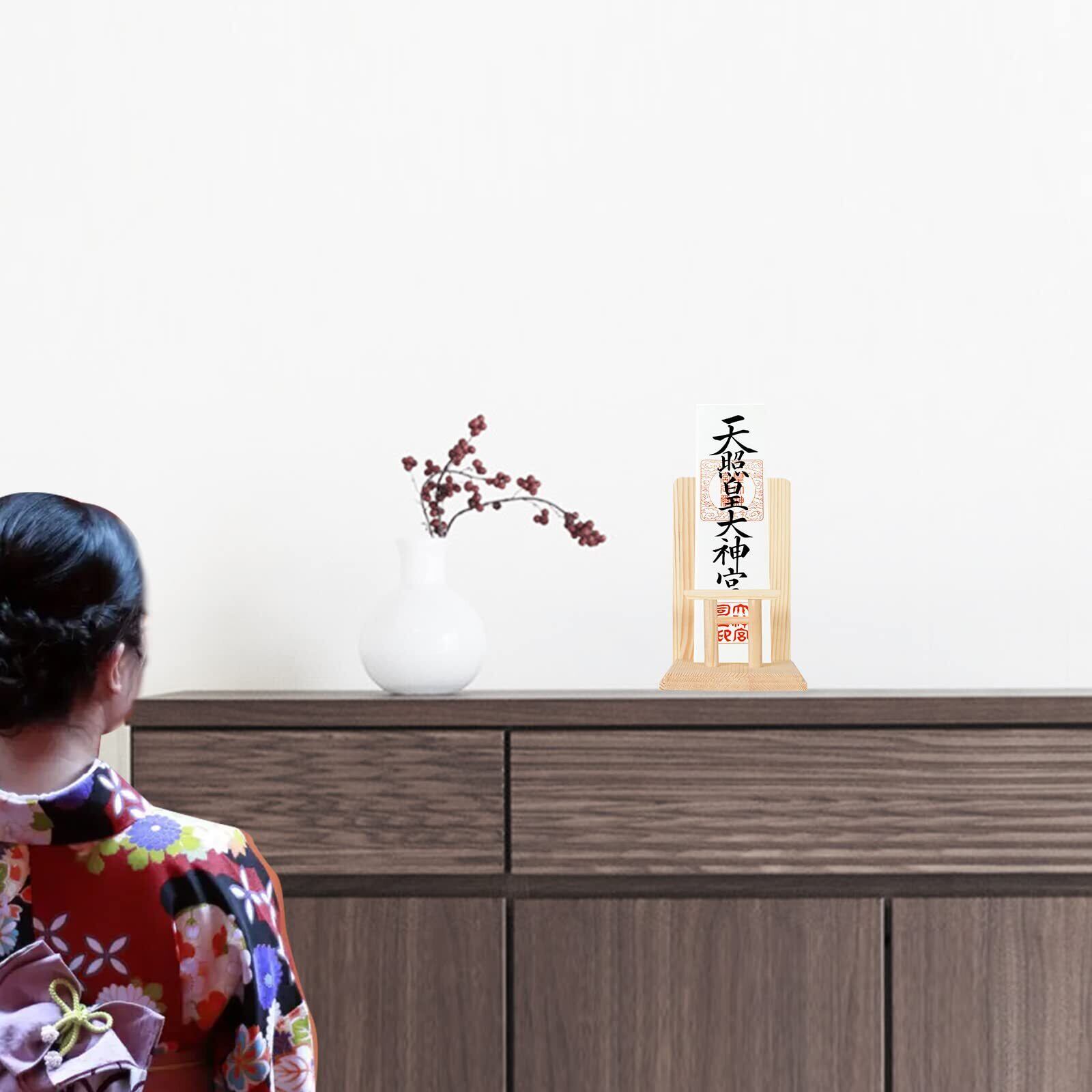 【お札立ての特徴】お札立ての真ん中に白松の鳥居を立っていて、神社のような神聖な雰囲気たっぷりです。俗世と神の域を分ける鳥居の向こうに、神社から頂いてきたお札をしっかりとお祀りできます。