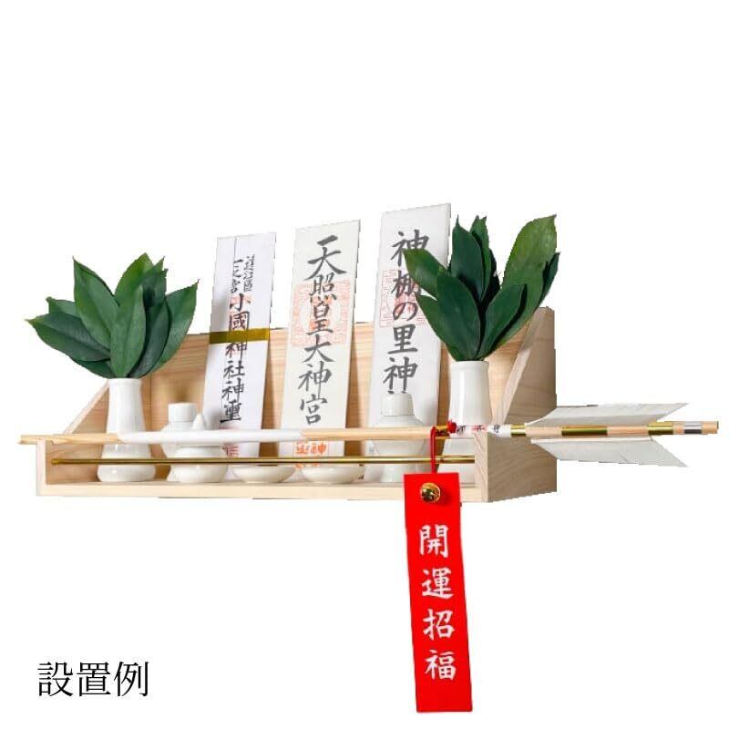神棚前面にはくぼみがあり、破魔矢を収めることができます。 また、落下防止バーもついており耐震性にも優れた神棚です。