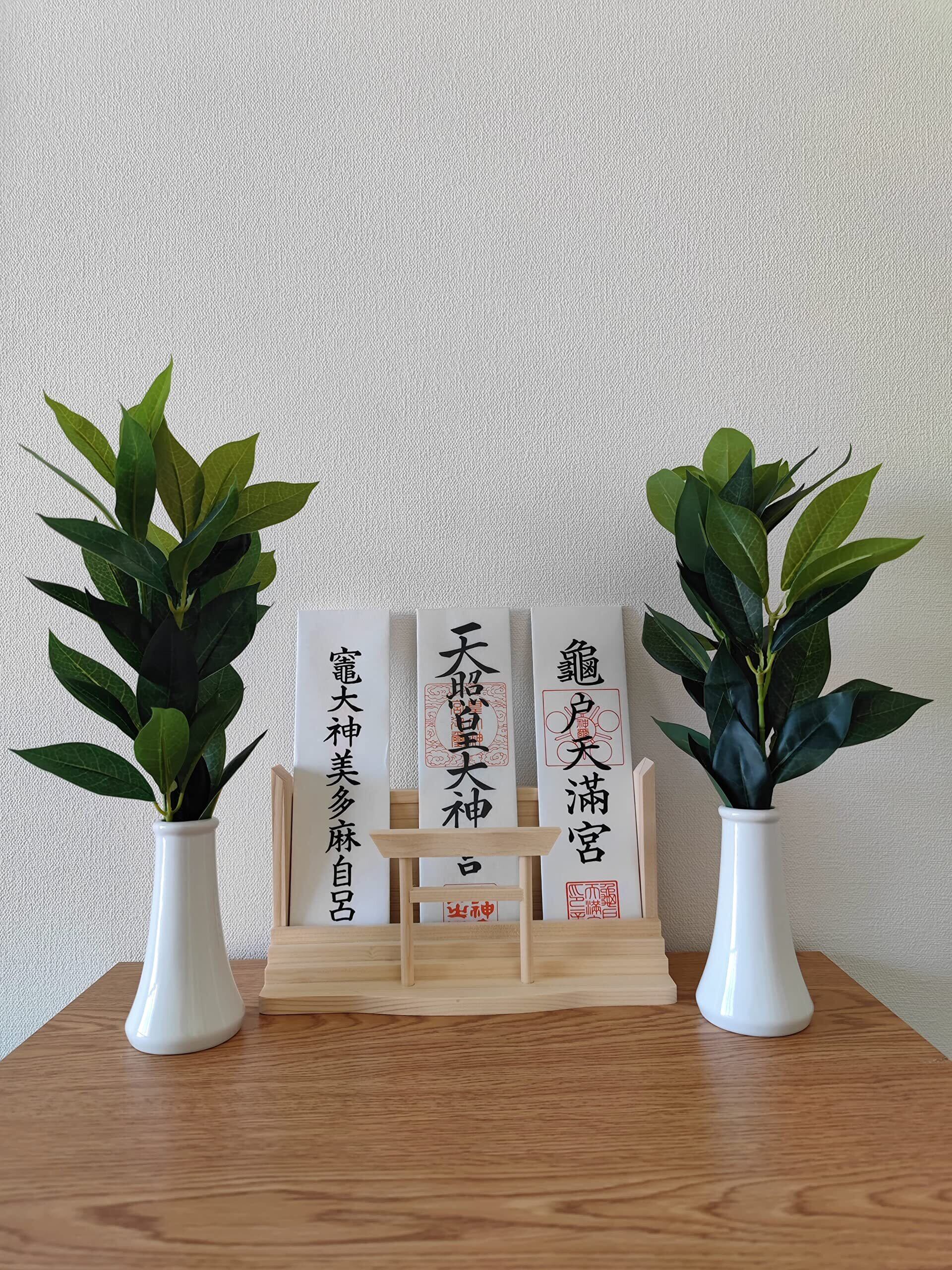 日本製 榊 造花 神棚 さかき 神具 サカキ 光触媒加工 (除菌・消臭) 本物品質 リアル Mサイズ 33cm 一対(2本セット)