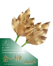 国産のサザンカ葉をプリザーブド加工(生木に無害な薬品・着色料で特殊加工)し、1枚1枚ていねいに編み込んで製作した榊一対(2本組)セット。 <実用新案登録済 第3222297号> ◆水やり不要 ◆美しく長持ち 国産のサザンカ葉を使用しているため、外国産にありがちな、枯れる、葉が丸まる、しおれるということがほとんどなく、長期間美しい状態を保てます。金色の榊なので華やかで、縁起も良く金運や開運が上がるイメージです。 水やりが不要なので、水が腐るニオイもなく清潔。特に高い場所にある神棚の場合、水換えは手間のかかる作業ですがそれも必要ありません。本物の生木を保存加工したものだから、神様にためらうことなくお供えできます。 ※絶対に水やりはしないでください。※非常にデリケートな商品です。葉の部分を触ると色が落ちたり、葉が割れる可能性があります。
