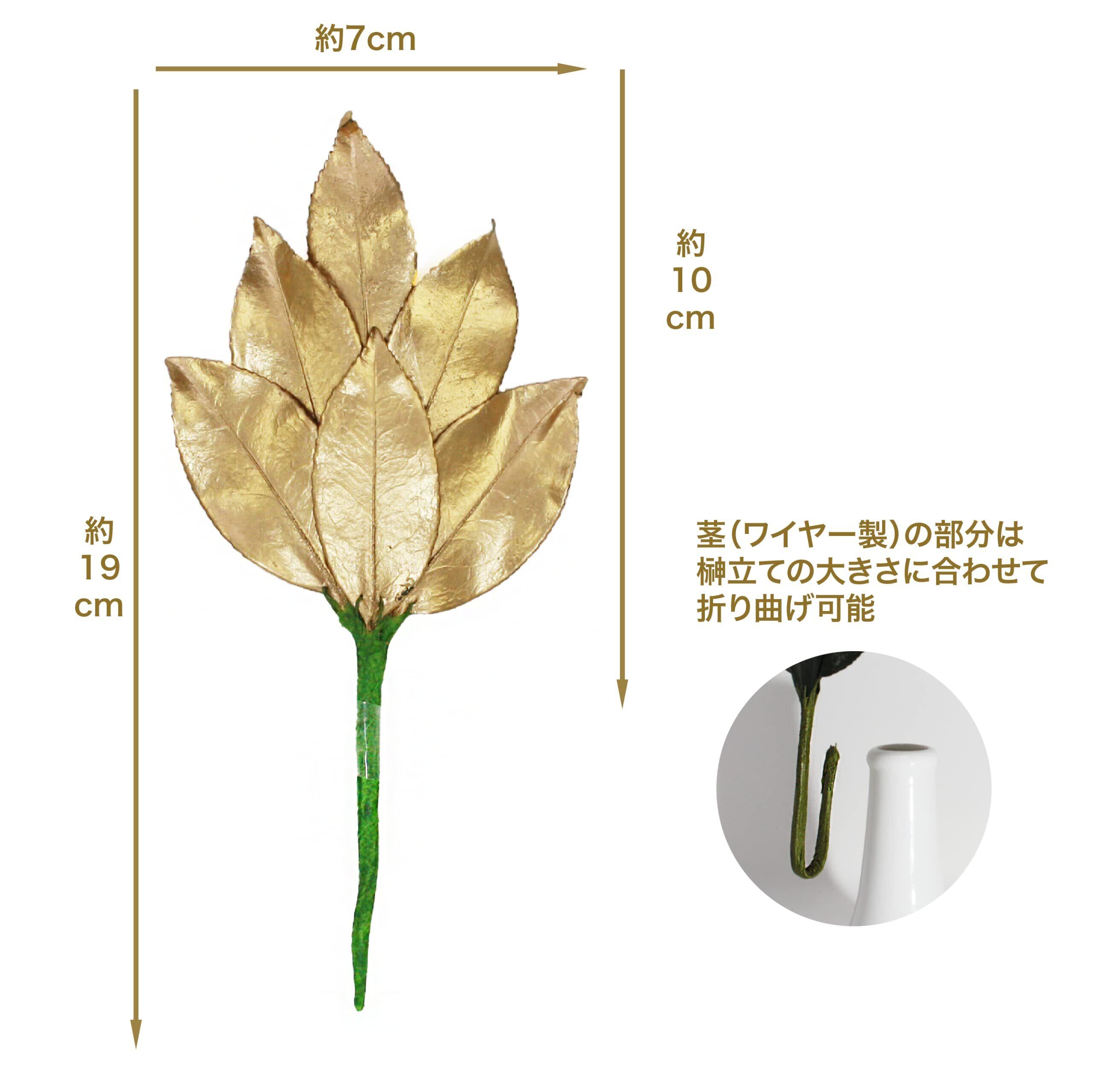 ◆水やり不要 ◆美しく長持ち 国産のサザンカ葉を使用しているため、外国産にありがちな、枯れる、葉が丸まる、しおれるということがほとんどなく、長期間美しい状態を保てます。金色の榊なので華やかで、縁起も良く金運や開運が上がるイメージです。