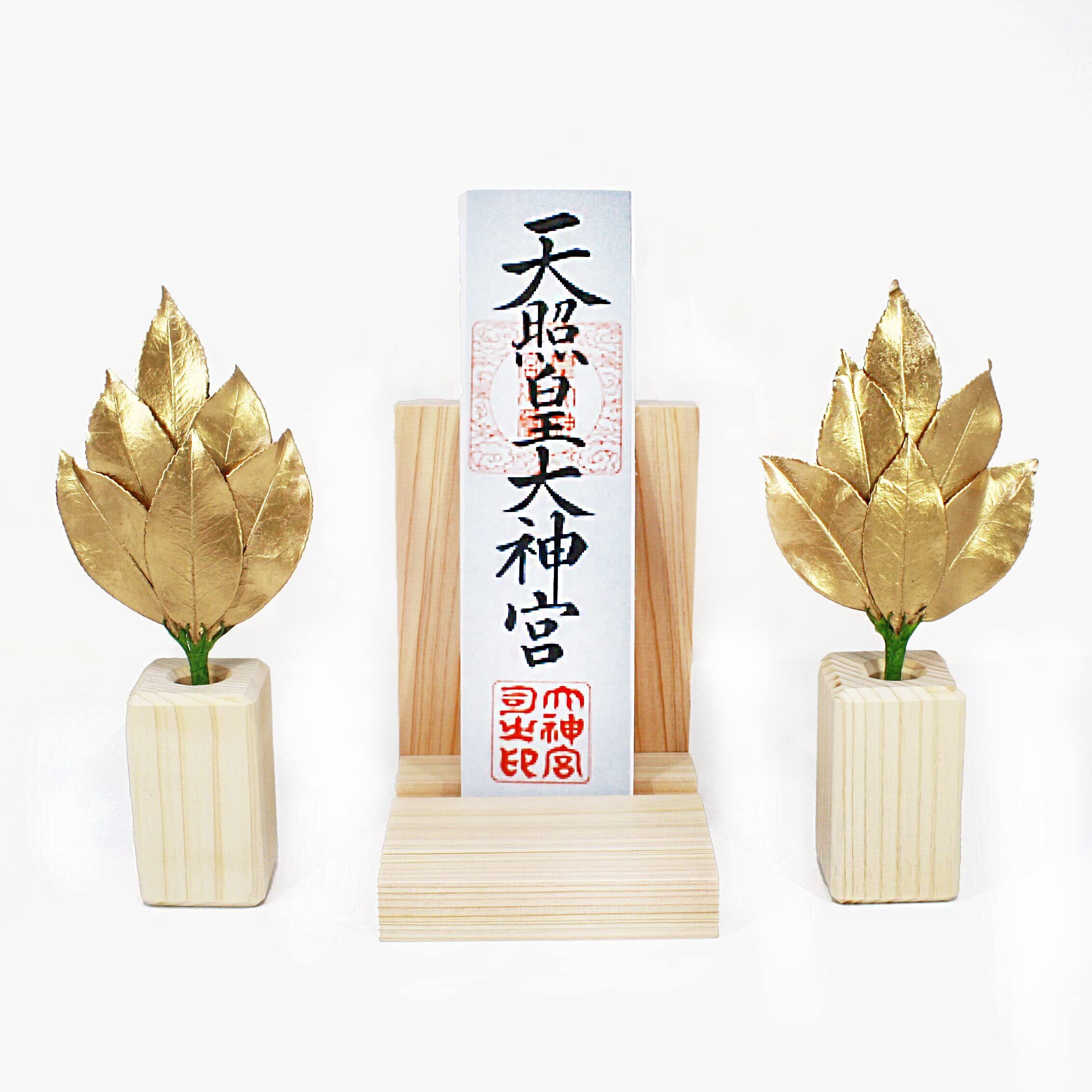 [A&K] 金 の 榊 ミニSS 【生葉使用 】 プリザーブド 榊 (国産 サザンカ 葉 使用) 『 金運 開運 運気上昇 』< 実用新案登録 第3222297号> 手作り ハンドメイド 枯れない 榊 サカキ 一対 水やり不要 神棚 神具