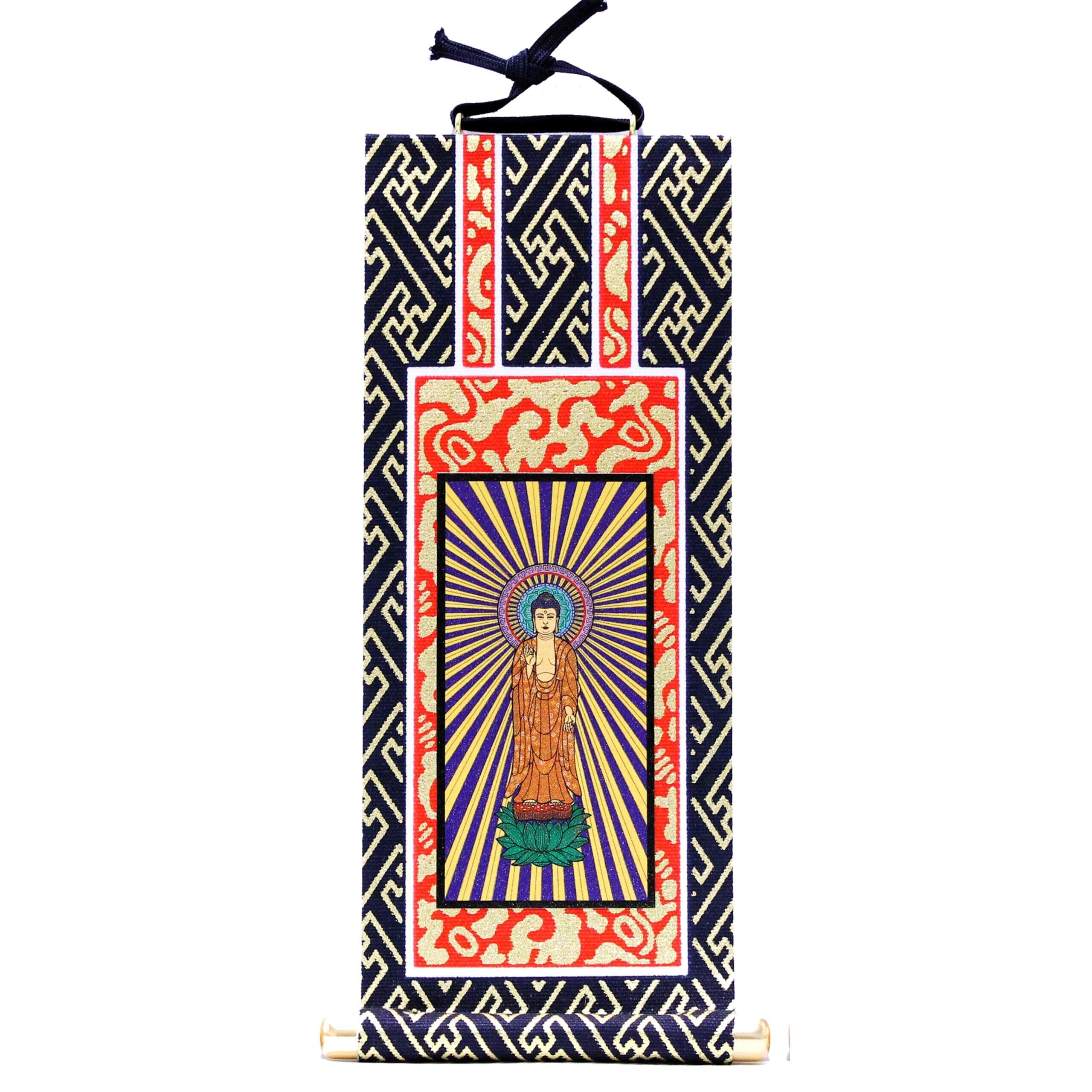 九華工房 【浄土真宗 本願寺派】阿弥陀如来 「お仏壇用 御本尊」 掛け軸 20代 高さ20cm 紺✕金 法輪鋲付き