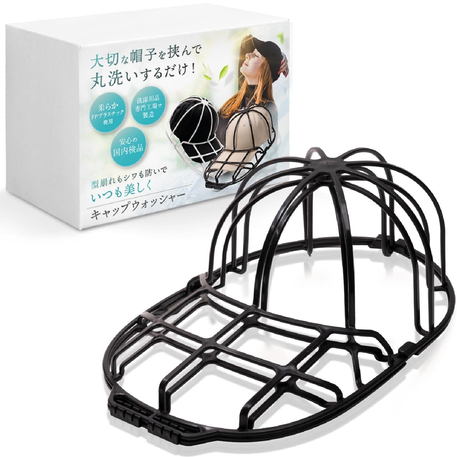 【anan掲載モデル】 LeLante キャップウォッシャー 帽子 洗濯 型崩れ防止 洗濯機 野球帽ウォッシャー 大人用 子供用 収納 吊り下げ収納 (ブラック)
