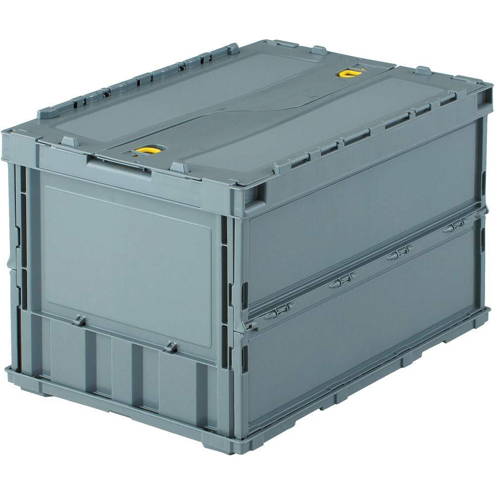 トラスコ中山(TRUSCO) 収納ケース 収納ボックス 薄型折りたたみコンテナ ロックフタ付 グレー 50L TRC50B
