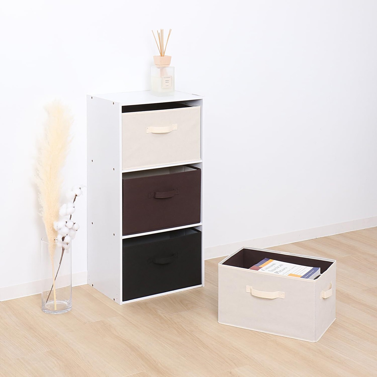アストロ 収納ボックス 3個セット 不織布製 カラーボックスにぴったり ベージュ×ブラウン 容量20L 衣類収納 おもちゃ収納 リビング収納 小物入れ 文書箱 おしゃれ 高見え 606-62