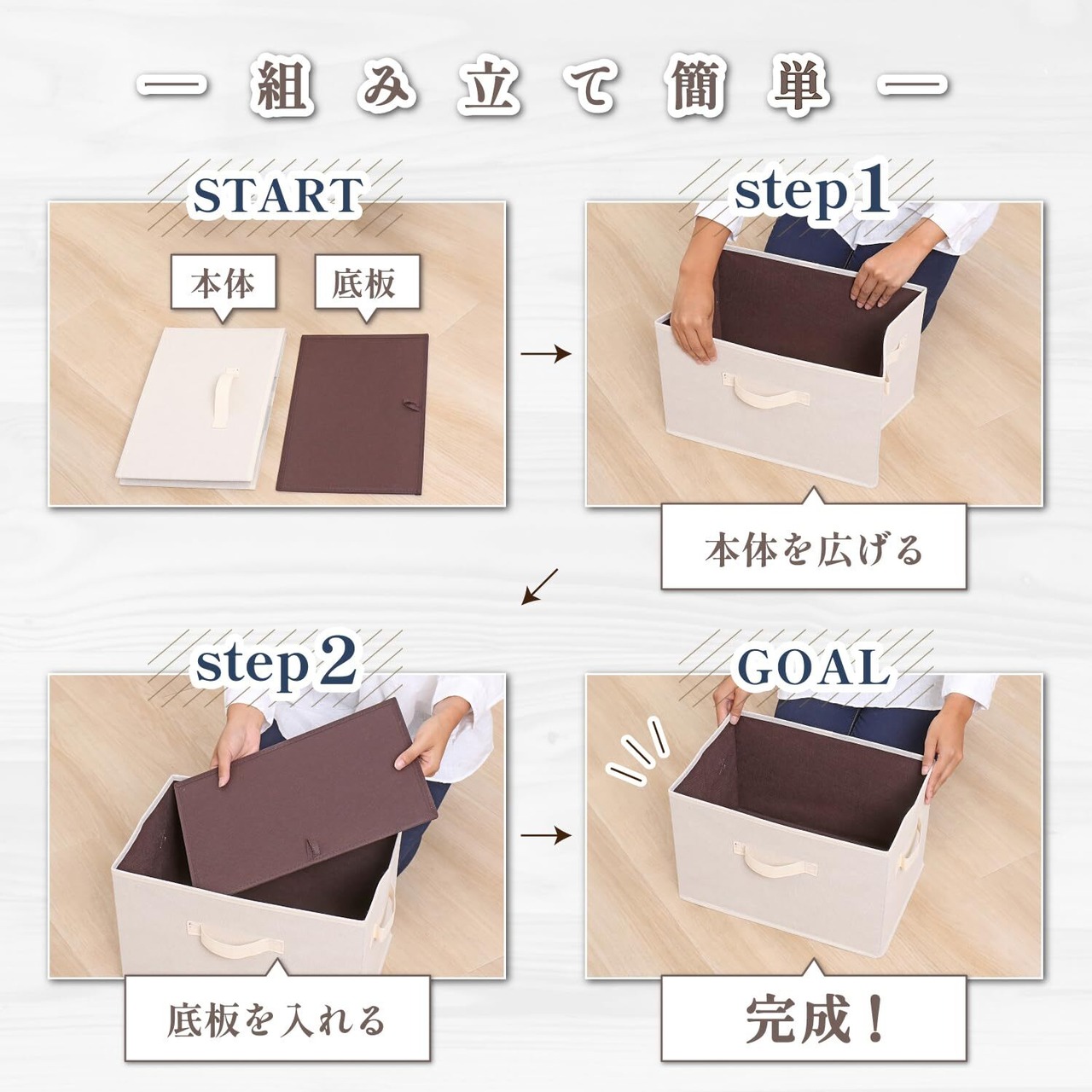 【組み立て簡単】:本体を広げて底板を入れるだけ。2ステップで完成。使わない時は折りたたんでコンパクトに収納。