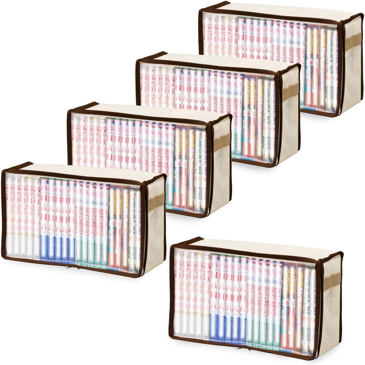 アストロ コミック収納ケース 5個組 ライトベージュ ホコリなどの汚れから守る 本 漫画 マンガ コミック 単行本 収納 ケース ボックス 不織布 透明窓 609-02
