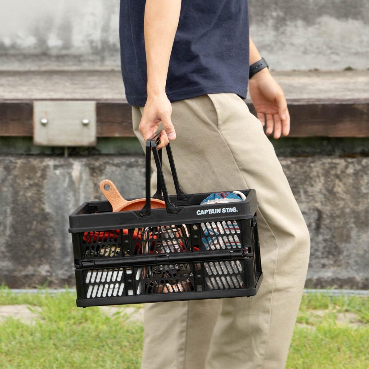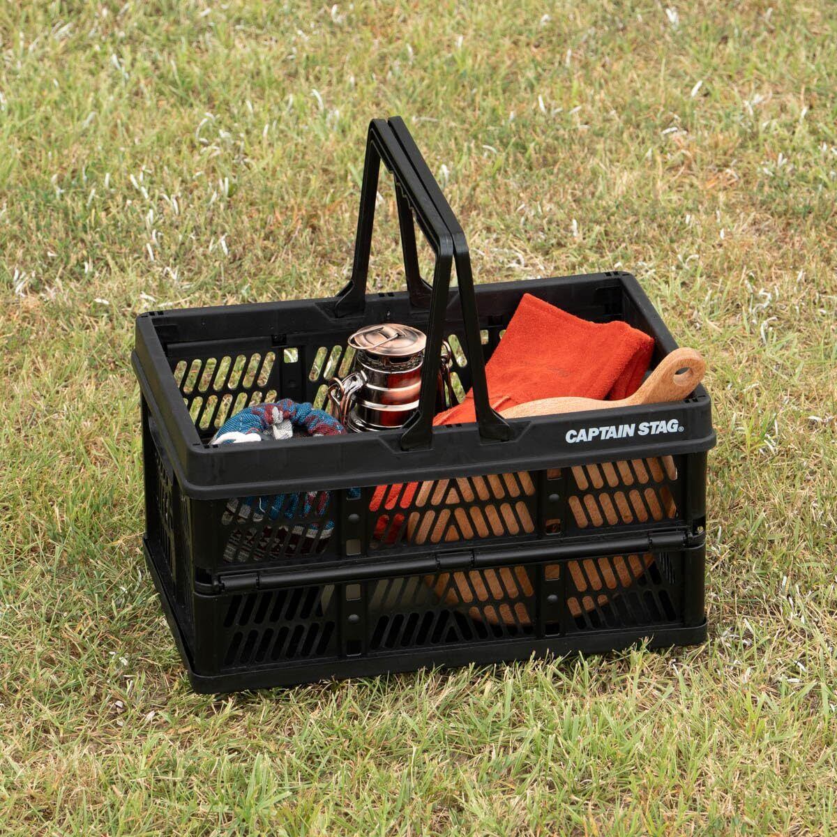 キャプテンスタッグ(CAPTAIN STAG) 折りたたみ コンテナ カゴ フォールディング ハンディ コンテナ 取っ手付き 【S/M/Lサイズ】 【容量7L/15L/26L】 【ブラック/カーキ/オリーブ】