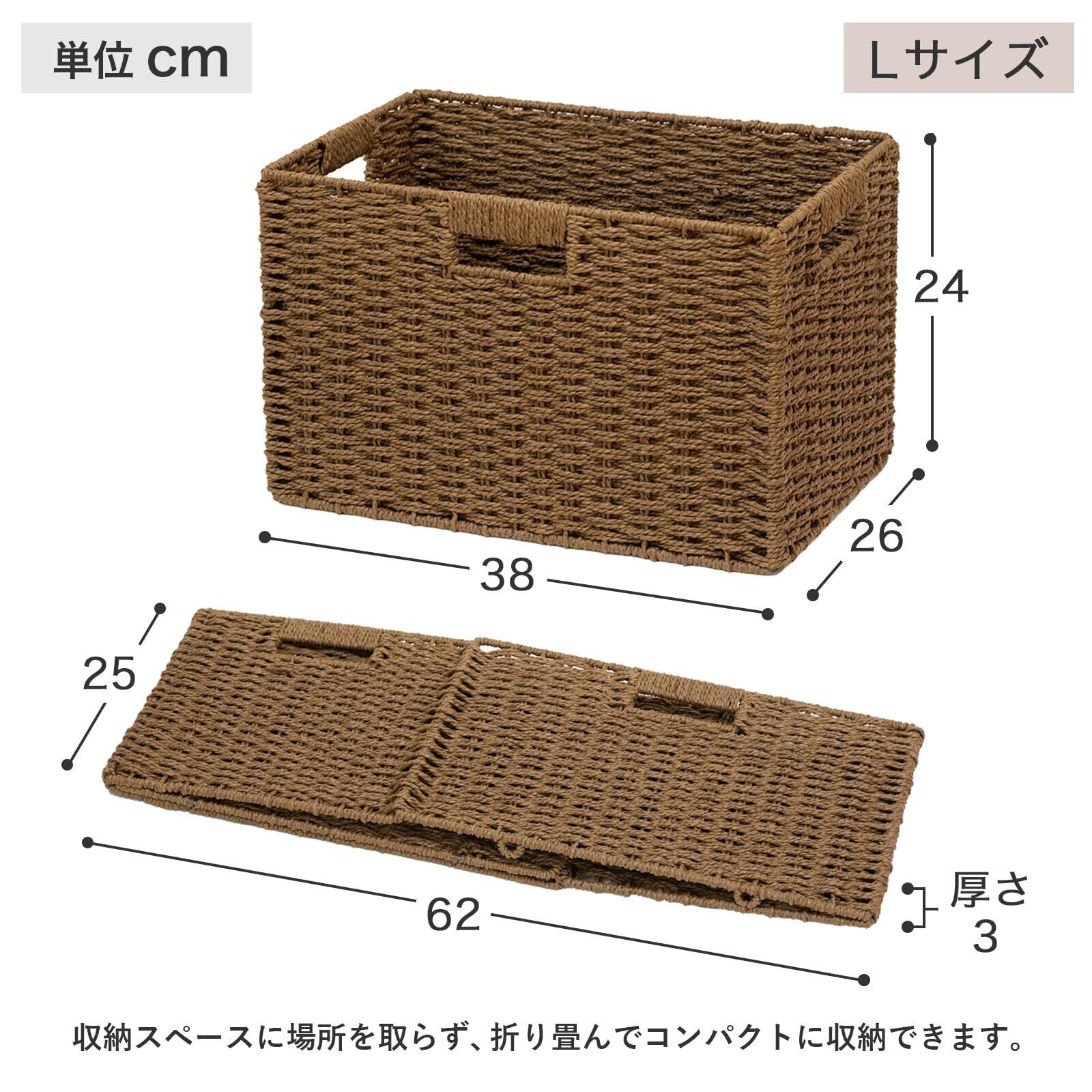 SAYA MAISON 収納バスケット 折り畳み式 手編み 2個入り 幅38×奥行26×高さ24cm ペーパーかご 持ち手付き 収納バスケット ボックス 籠 おもちゃ 小物収納 業務用 幼稚園 卓上 室内 屋外 小物ケース 大きい 天然素材 おしゃれ
