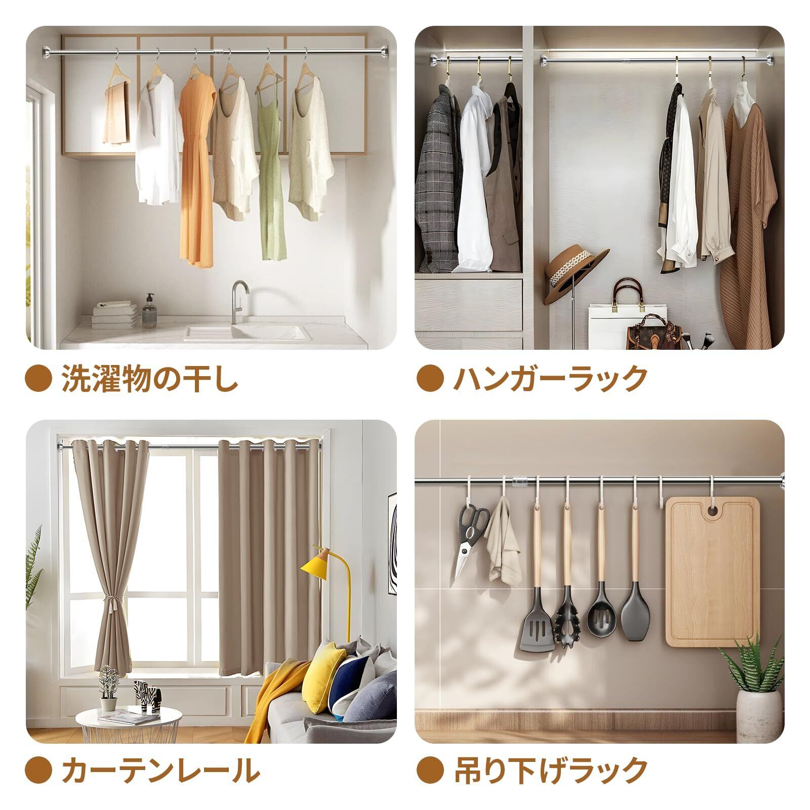 クローゼット・浴室・キッチン・ベランダなど、あらゆる場所で使える!→ カーテンロッド/物干し竿/タオル掛け/DIY棚/布団干しに最適。