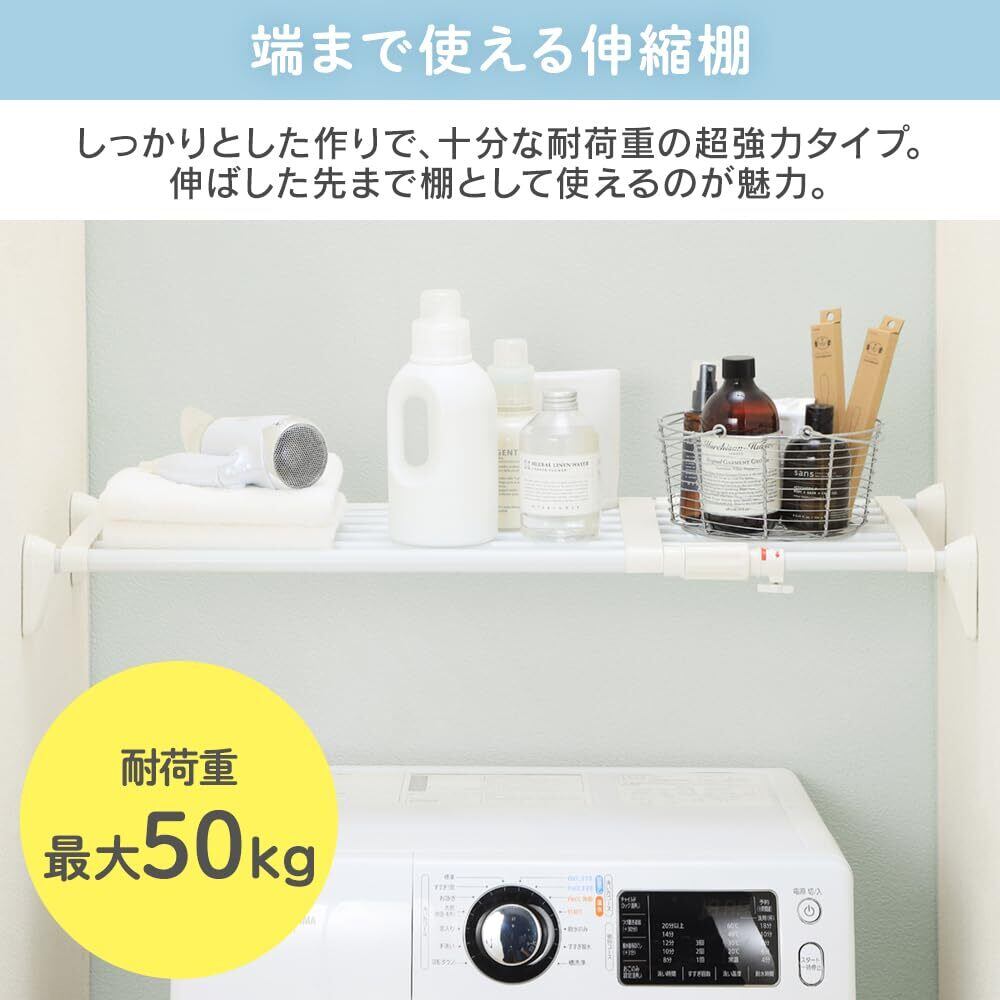 アイリスオーヤマ 伸縮棚 超強力伸縮ワイド棚 耐荷重50㎏ 幅110-190㎝ 幅広タイプ ランドリ―ラック H-J-W110R ホワイト