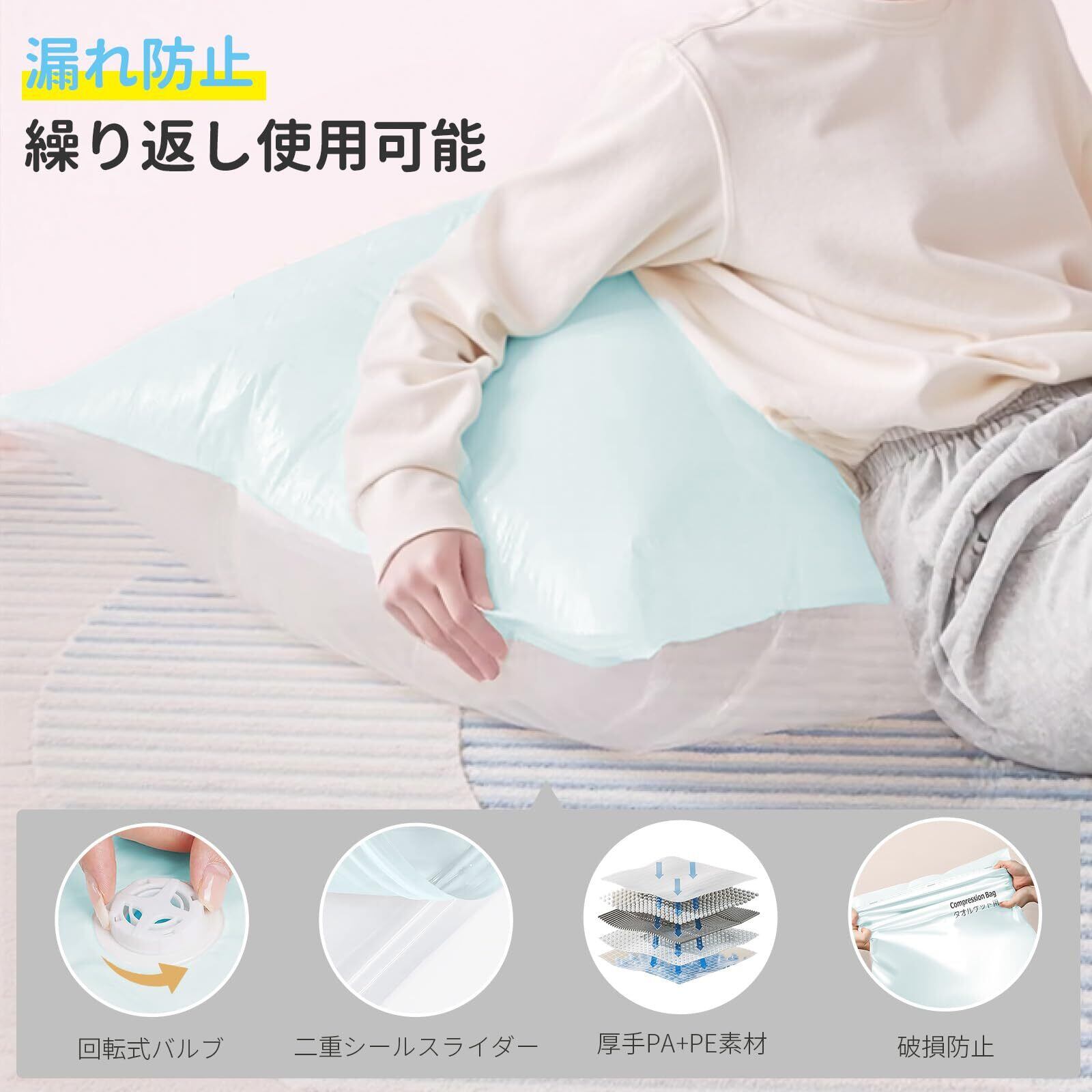 【耐久性素材】圧縮袋は高品質 PA・PE 素材製で、丈夫で耐用性に優れます。優れた防水性と密封性により、衣類を湿気や埃から確実に保護します。