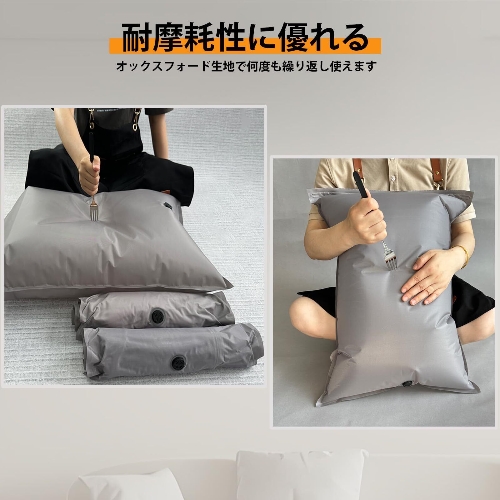 【排気簡単】この手押し衣類圧縮袋はスピード排気バルブが装備しています。空気を抜いた後は捻じるだけ、道具不要で簡単に荷物を圧縮できます。お手で押したり丸めたりして脱気でき、掃除機を使わず極限まで空気を抜けます。カバンの中はすっきり、シンプルに快適移動できます!