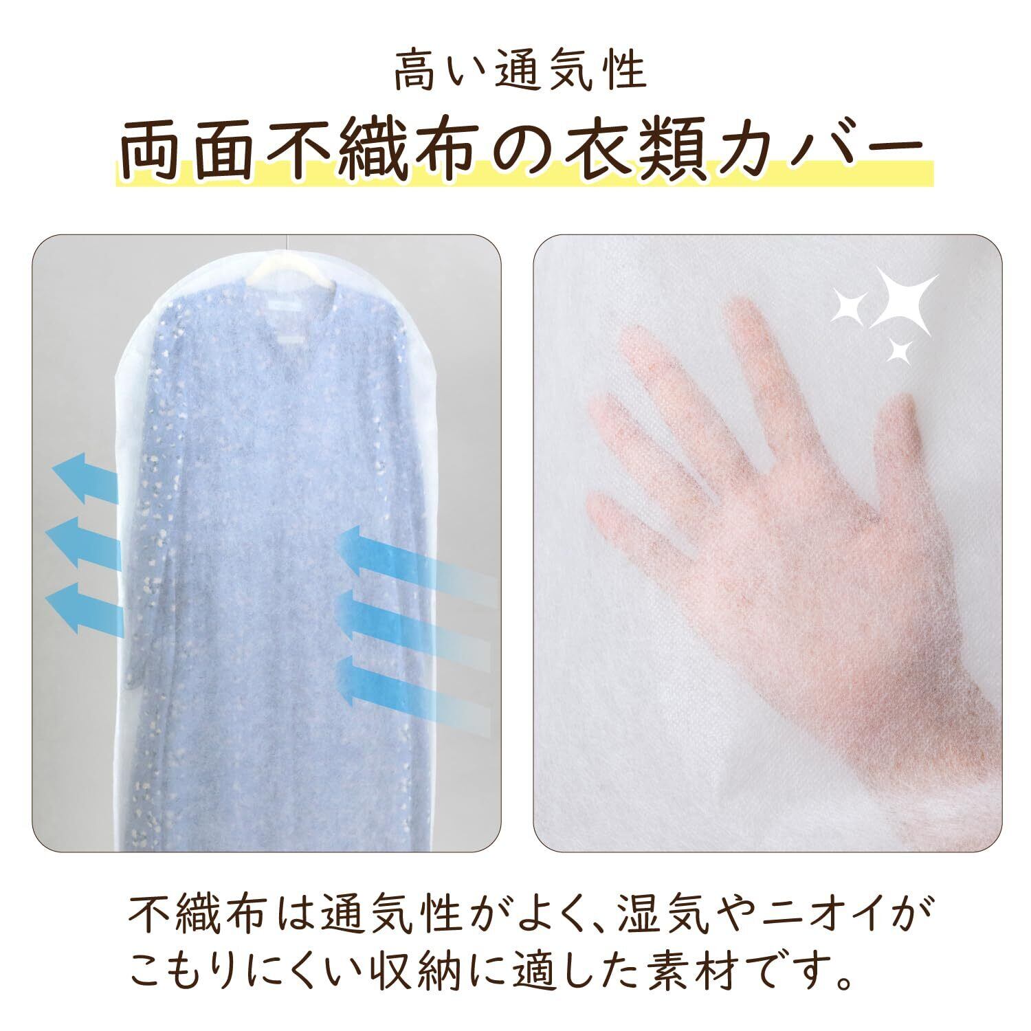 【通気性に優れた不織布製】:通気性の良い不織布でオフシーズンの衣類や冠婚葬祭用の服をホコリから守り保管。