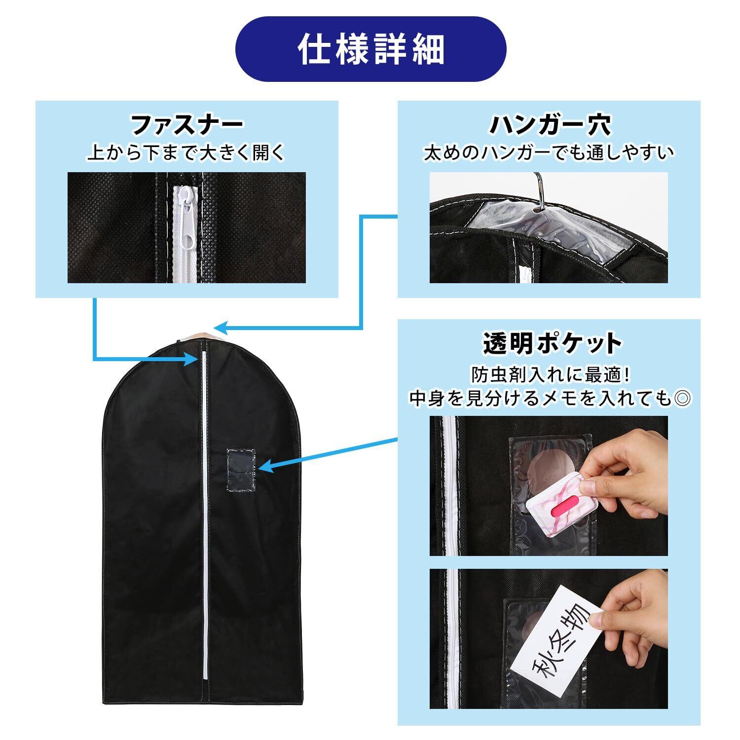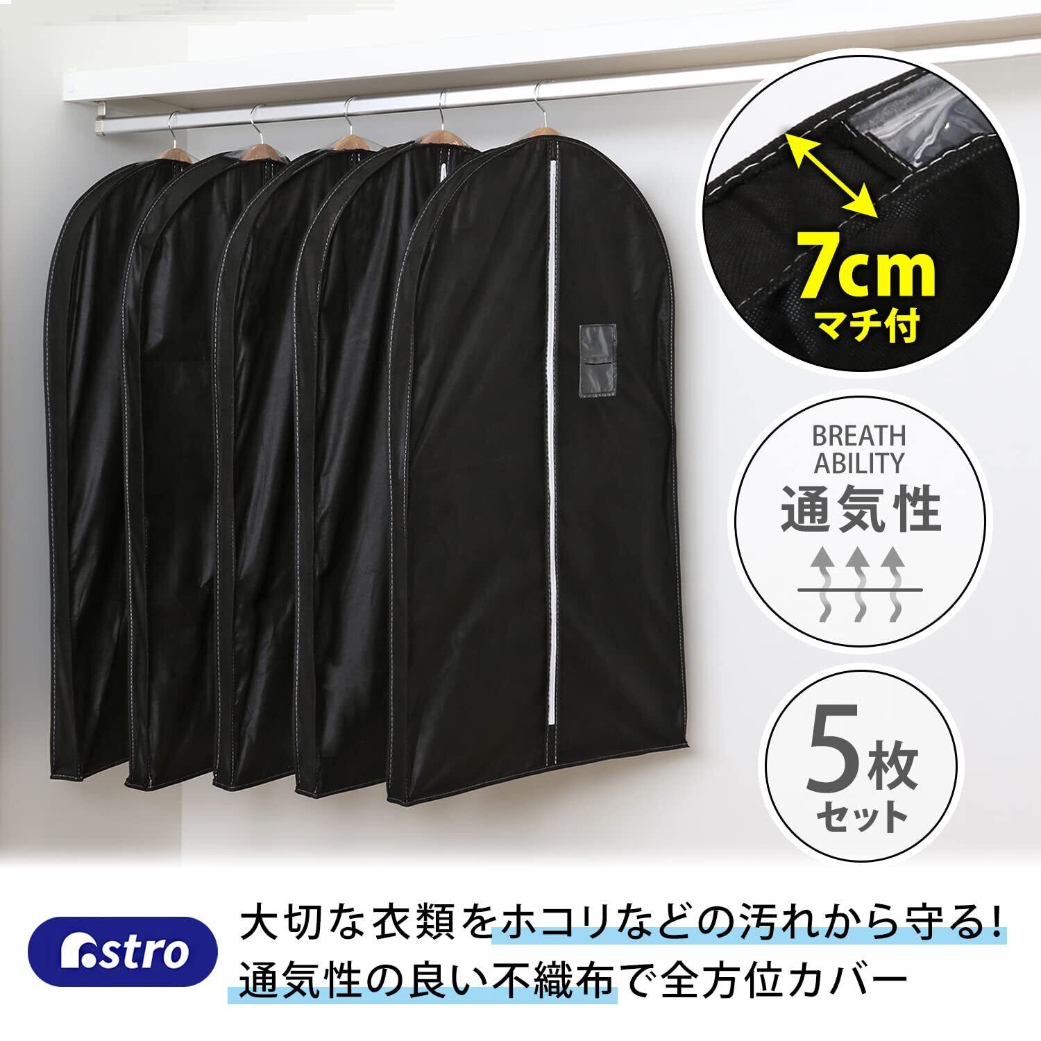 アストロ マチ付スーツ用カバー ブラック 5枚組 湿気・ホコリ・カビ対策 洋服カバー 厚手のものやシルエットの気になるフォーマルの保管に最適 110-45
