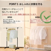 【防水&防汚】水や汚れから大切な衣類をガード!お部屋に置いても安心なハンガーラックカバーで、いつもスッキリキープ。白色デザインでお部屋が明るく整頓された印象に。ホコリよけカバーとしても優秀で、隠したい衣類もスマートにカバーします。表面の汚れは湿らせた布で拭き取ることができ、手洗いも簡単です。洗濯機では洗えません。
