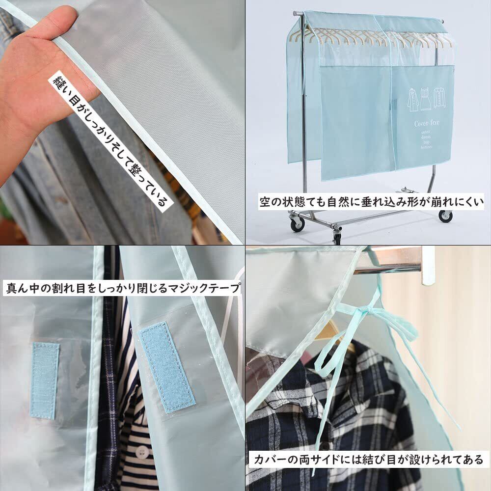 【マジックテープで洋服の取り出し簡単】ラックカバーの真ん中にはマジックテープが設けられ閉め開けがとても便利です。衣類カバー内に掛けてあるスーツや制服等が日にちが経つに連れ積もってくるホコリから衣類を守ってくれるしカバーからの取り出し取り入れも便利です。