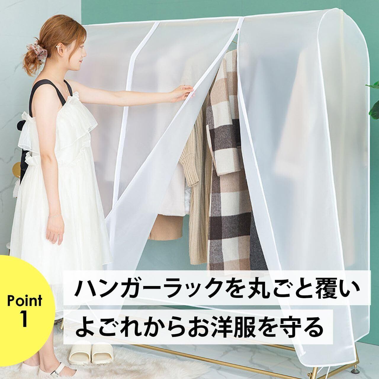 【衣類の整理整頓・保管にぴったりの衣類カバー】ハンガーラックを丸ごと守る洋服カバーです。ホコリ・よごれから大切なお洋服を守ります。ファスナー開閉式で簡単に取り出し&中身が見えやすいから管理も楽々。