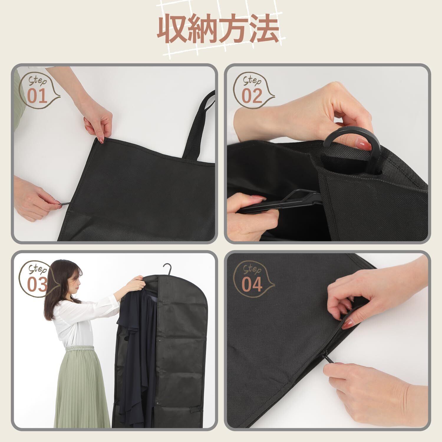 【商品コンセプト】 ・コスパ◎ ・丈の長いドレスやコートを収納可能なガーメントバッグ! ・超軽量!三つ折りで小さくなるため、持ち運びにも便利!
