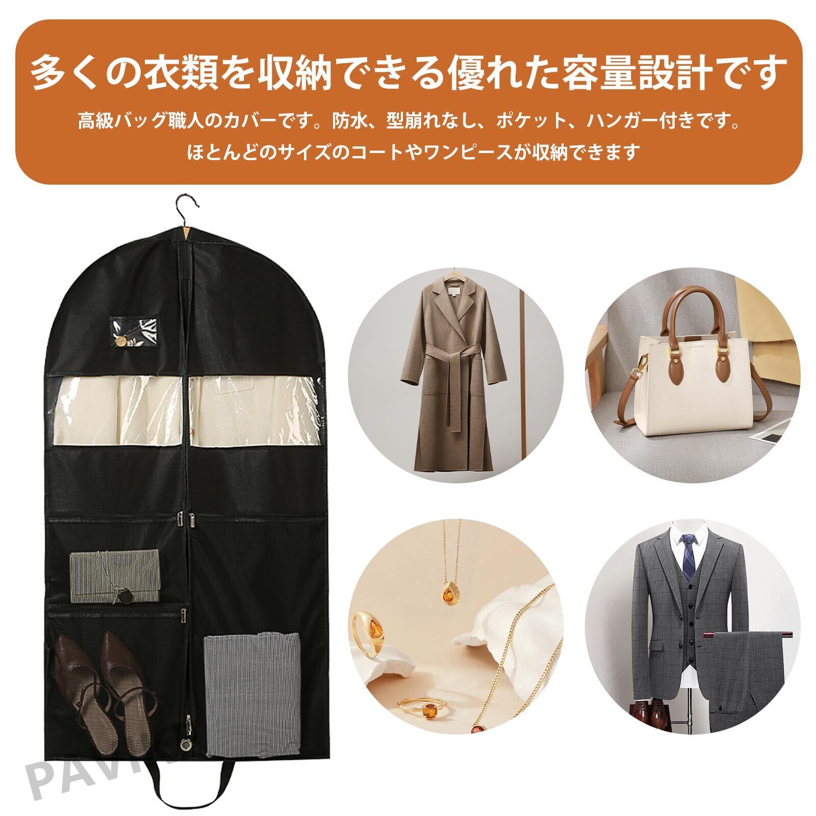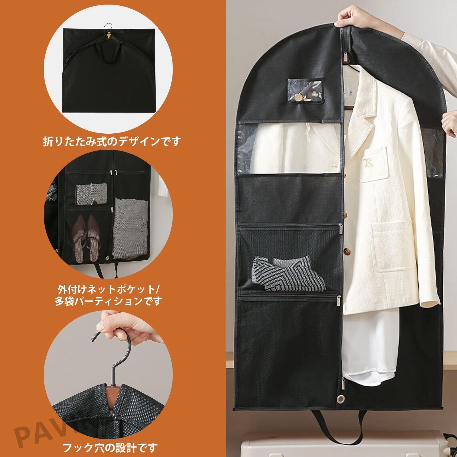 PAVIKE ガーメントバッグ スーツカバー スーツカバー 透明窓付き 折りたたみ式衣類カバー 衣装カバー 多ポケット設計 ファスナー 持ち手付き 季節替え 型崩れ防止 防塵 防湿 防カビ 出張 冠婚葬祭 旅行 就活 出勤 スーツ・ジャケットなど用 (130*10*60CM)