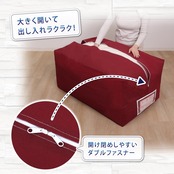 【布団の出し入れスムーズ】:ダブルスライダーのロングファスナーで大きく開くので、布団の出し入れがスムーズ。