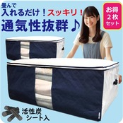 サイズ:布団ケース/約幅100x奥行70x高さ35cm 衣類ケース/約幅50x奥行35x高さ20cm 素材:ポリプロピレン不織布/ポリエチレン/活性炭シート ※洗えません 生産国:中国