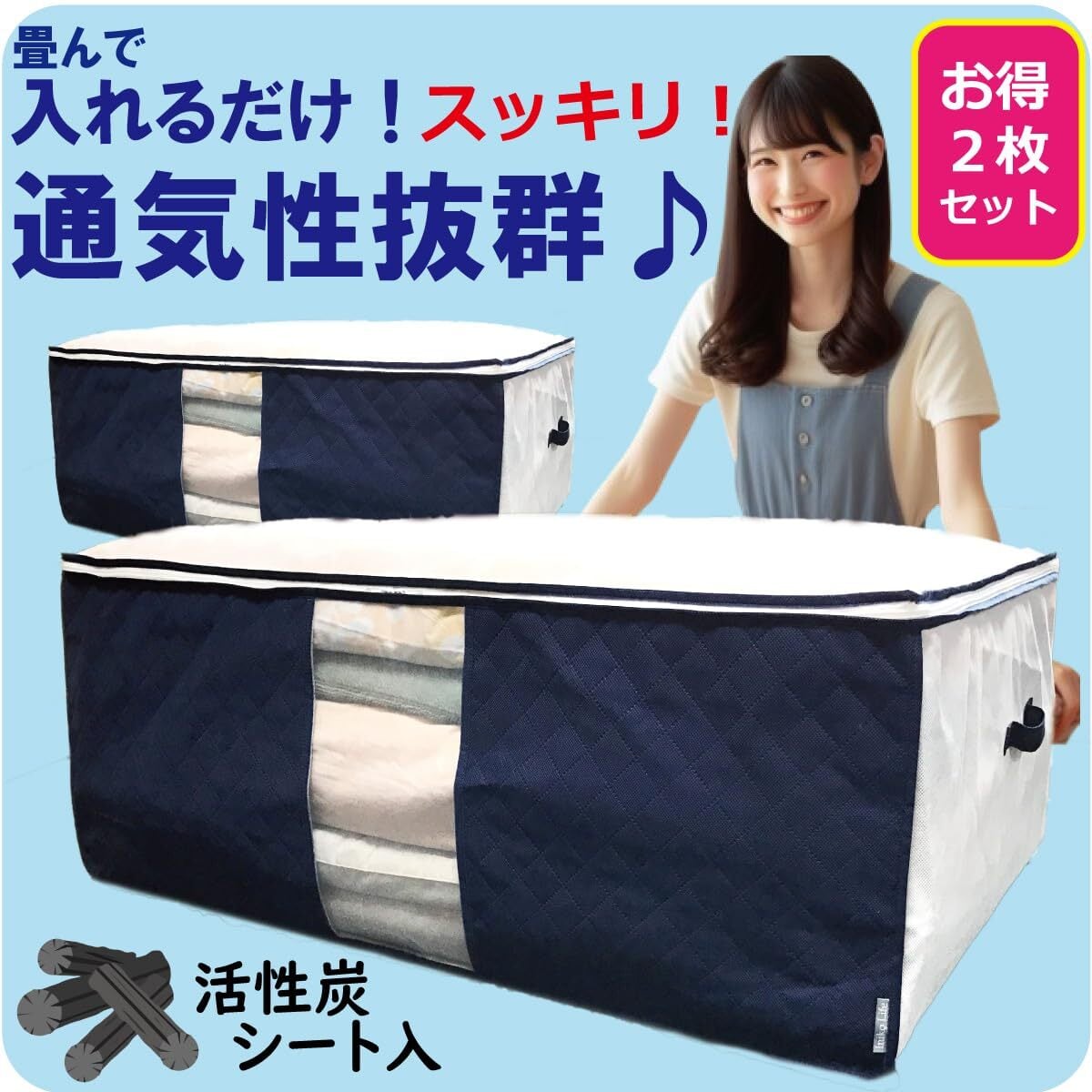【通気性の良い布団/衣類収納ケース】通気性の良い厚手不織布製。前面に活性炭シートを加工し、大切な布団や寝具、衣類や小物などをにおい・ホコリ・汚れから守ります