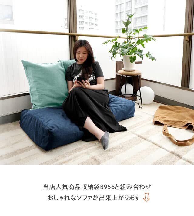 フロアソファにとして座ったり心地良いくつろぎスペースに型崩れが起きにくい・劣化しにくい生地。また吸水性が低いため、洗濯後もすぐに乾いてくれる素材です。※洗濯機をご使用の場合は、洗濯用ネットに入れて水洗いしてください。