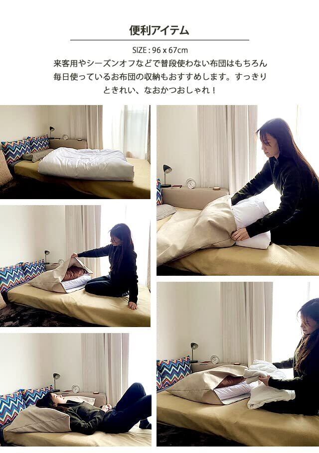 オフシーズンの布団や来客用の布団などは普段は使わないのに場所をとって収納に困りますよね。しまうはずの布団を、すっきり片付けながらソファやクッションとして有効活用ができます。