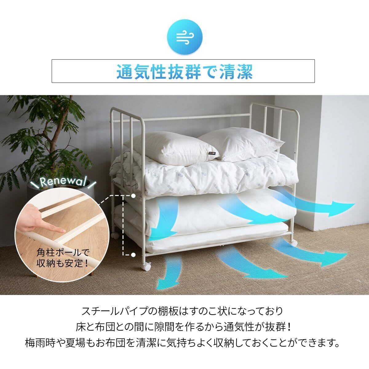 エムール 大容量 布団収納ラック 布団収納 2段 キャスター付き 棚板高さ調節可能 総耐荷重約40kg 通気性