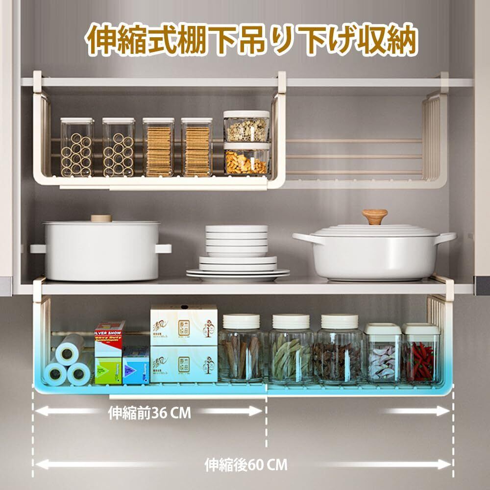 吊り下げ棚 伸縮式 差し込み式 戸棚下 吊り戸棚 収納ラック 吊り下げラック 戸棚下収納ラック 吊戸棚 バスケット キッチン収納 掛け式 省スペース