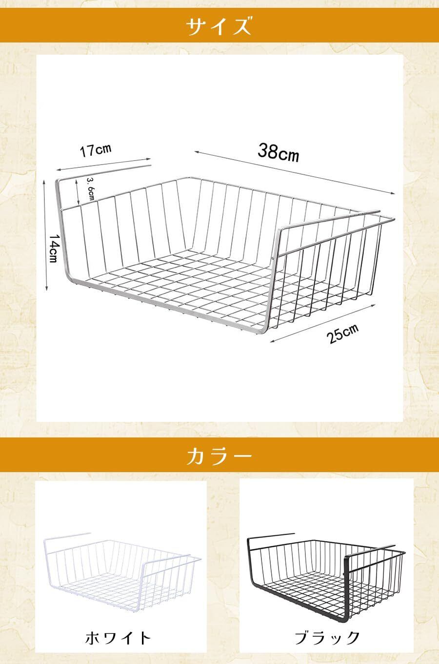 ideamall 吊り下げ収納 吊り下げラック 吊り下げ棚 収納 カゴ バスケット ラック ストッカー 38x25x14cm (ホワイト)