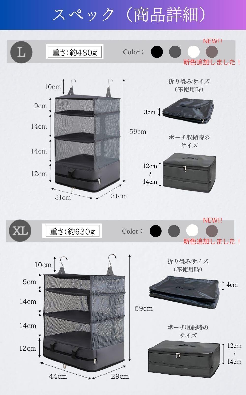 ※在庫処分価格※『軽量化 YKKファスナー採用』 クローゼット吊り下げ収納 インナーバッグ トラベルポーチ 吊り下げ YKK 圧縮 旅行 出張 旅行 パッキング (ブラック, L)