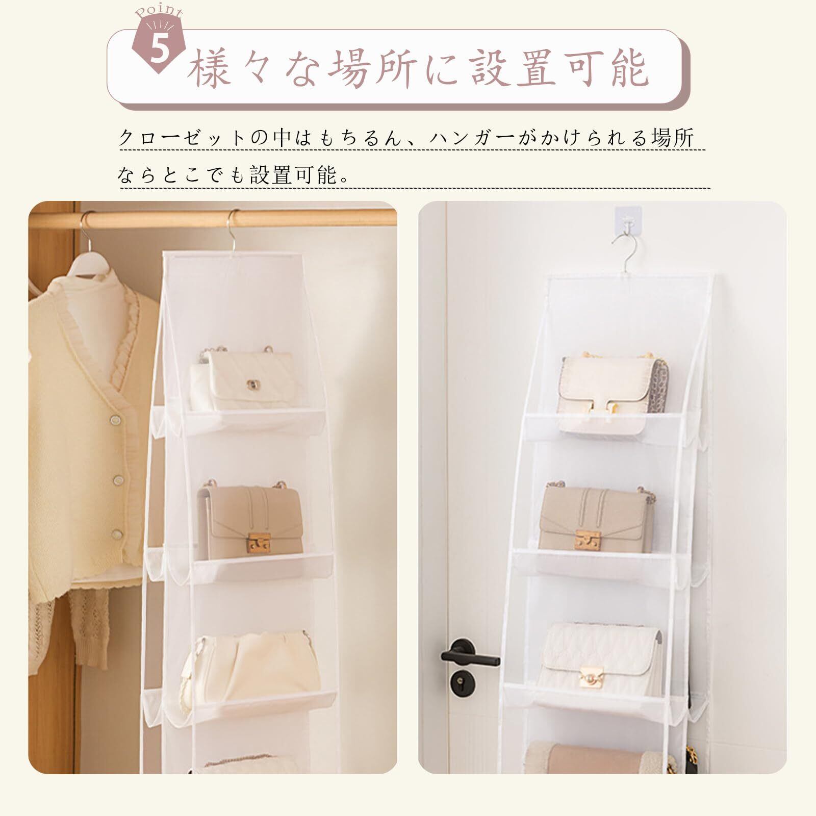 [Senteria]バッグ カバン収納 吊り下げ式 折りたたみ 両面収納 省スペース ホワイト 鞄収納 収納スタンド 可視化設計 不織布 防塵 防湿 水洗い可能 取り付け簡単 小物入れ 壁掛け 玄関 浴室 旅行 3段式