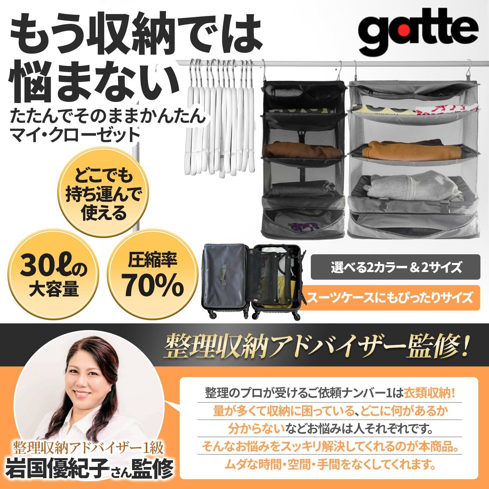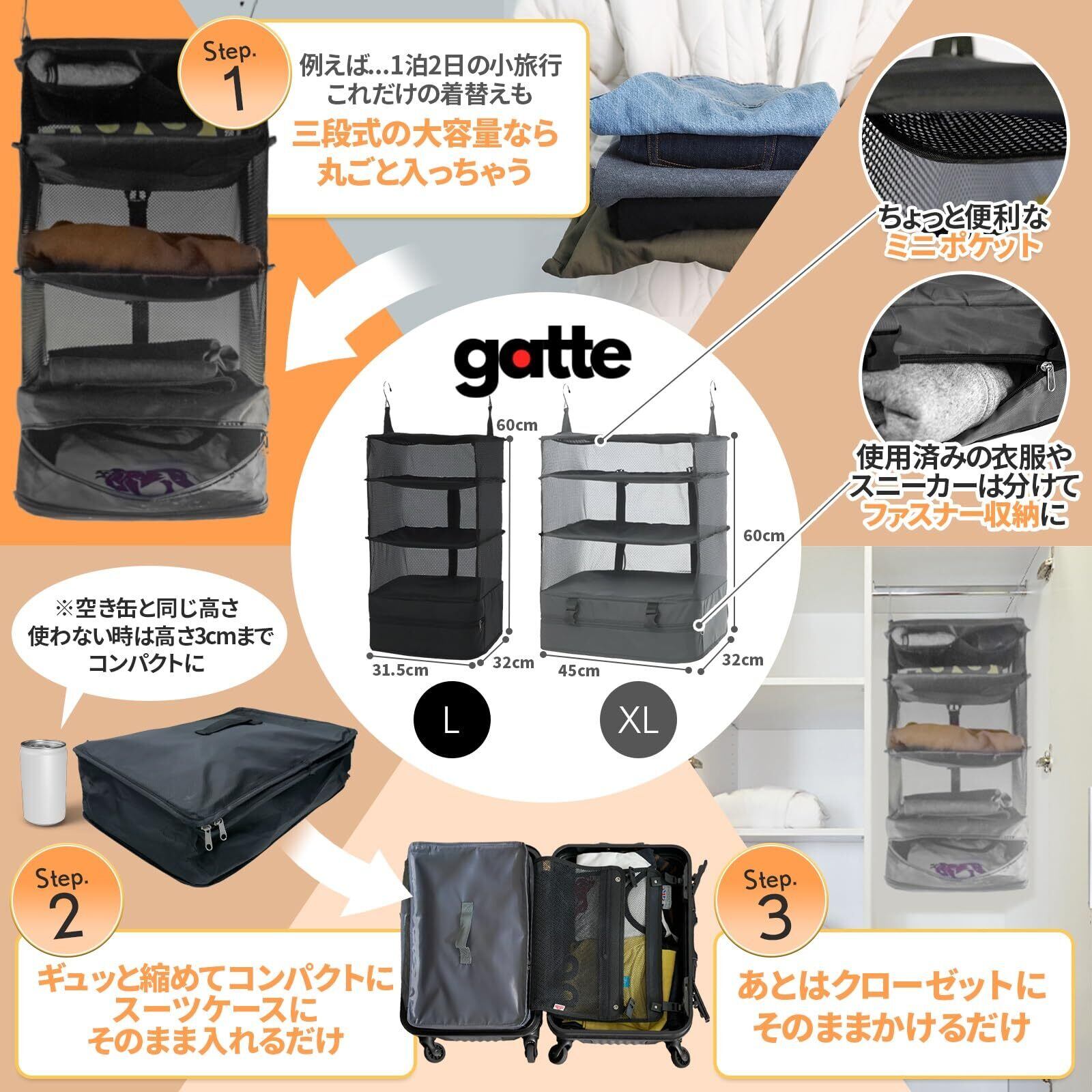 【整理収納アドバイザー監修】トラベルポーチ 吊り下げ収納 『 便利な圧縮袋付属 』 ハンガー クローゼット 旅行 gatte(グレー,XL)