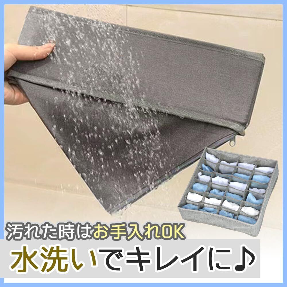 下着&靴下収納ボックス 24ポケット 通気性 引き出し整理 折り畳み 水洗い可能 (グレー)