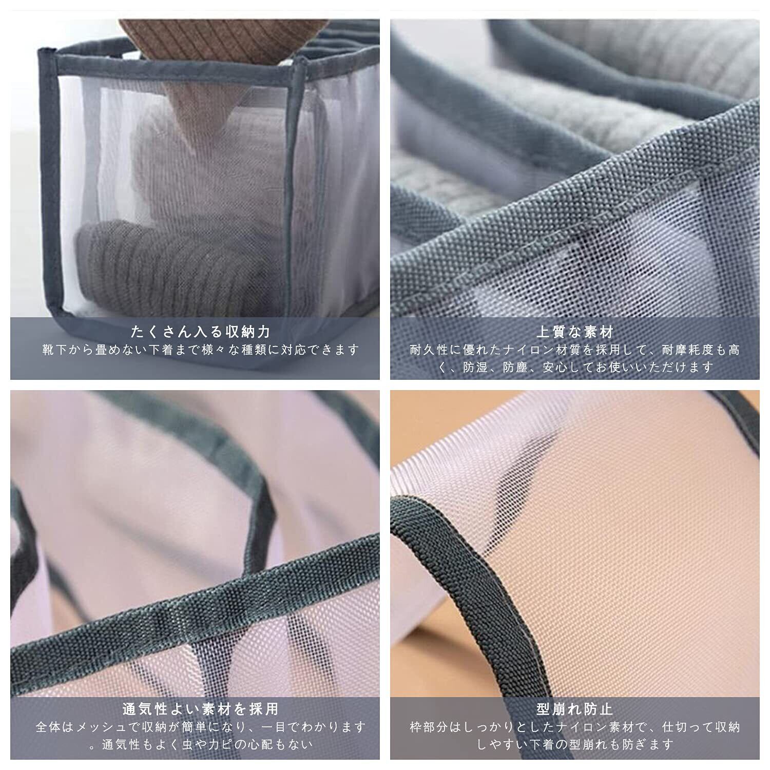 【高品質素材】ナイロンメッシュを採用し、高品質で、臭いもなし、下着などの物をほこりから守り、清潔に保つことができます。小物収納ケースの丈夫なデザインで、変形しにくい、長持ちになります。使用後は水洗いでも色褪せません。環境に優しく、美しく、耐久性に優れた特性を持っています。