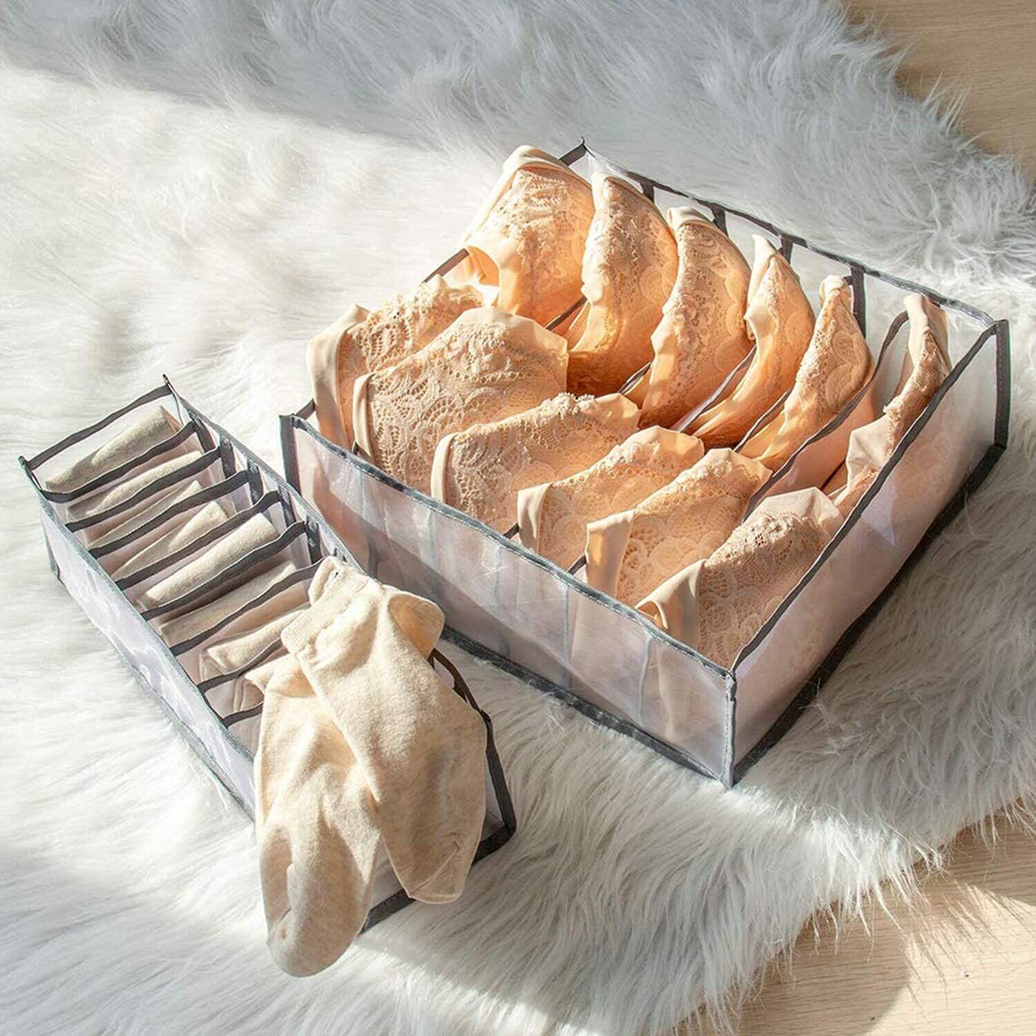 Xnuoyo 下着収納ボックス 下着収納ケース 引出し収納 整頓ボックス 引き出し仕切り 大容量 折り畳み 靴下 小物収納 防塵 防湿 通気 収納简单 多機能 (6点セット)