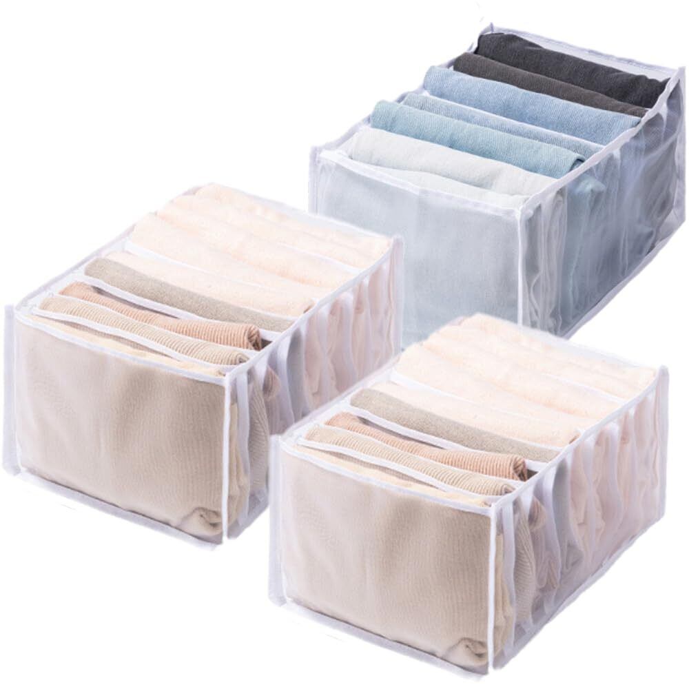 HIRAISM 衣類収納ボックス 洋服 シャツ ズボン 収納 引き出し 仕切り メッシュ (7マス, 9マス, 9マス, シャツ×ズボン 3点セット ホワイト)