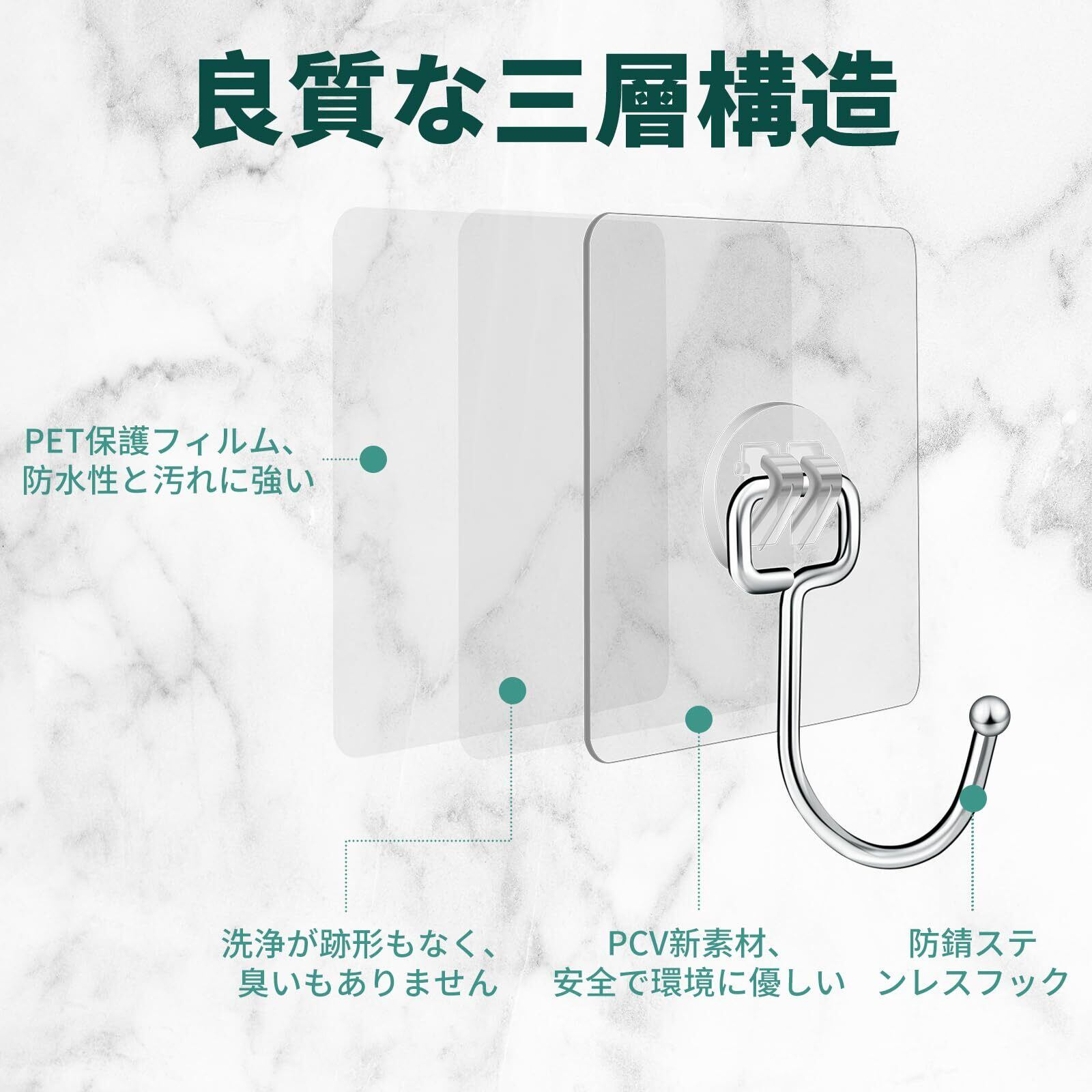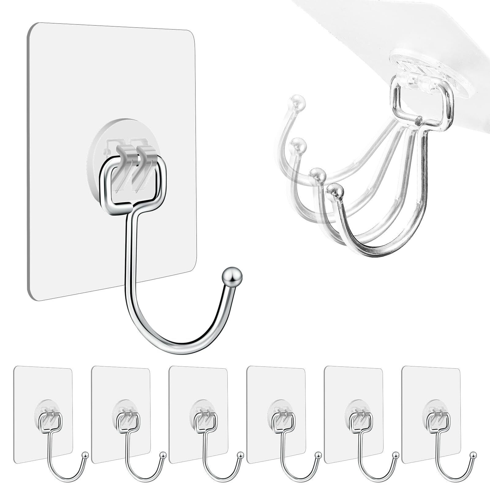 Giitoo 粘着強力フック 8cm×8cm 耐荷重25KG 壁掛け フック 透明フック ステンレス鋼 耐食性 錆びない (6, 透明)