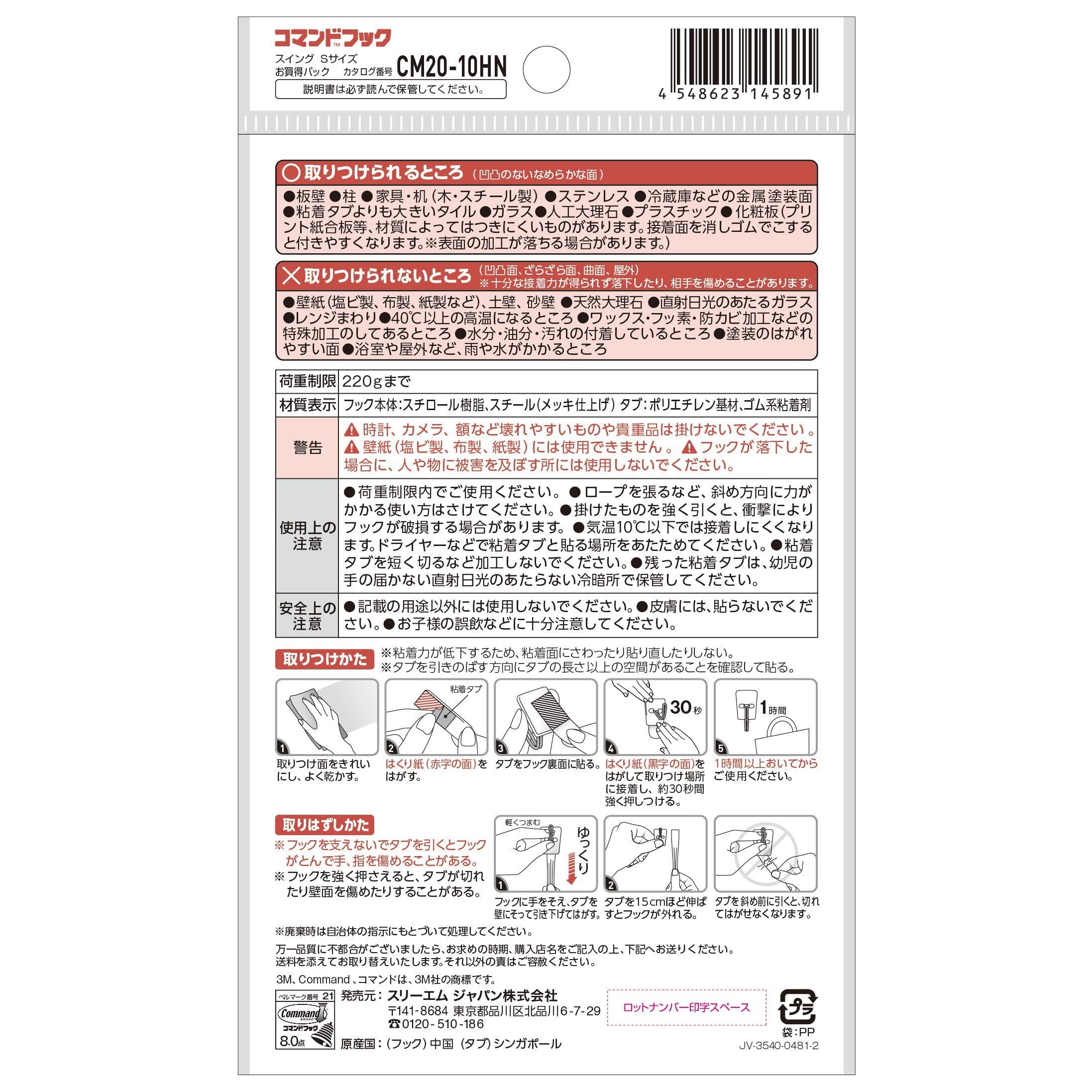3M コマンド 壁掛け 粘着 フック スイングフック 10個 CM20-10HN