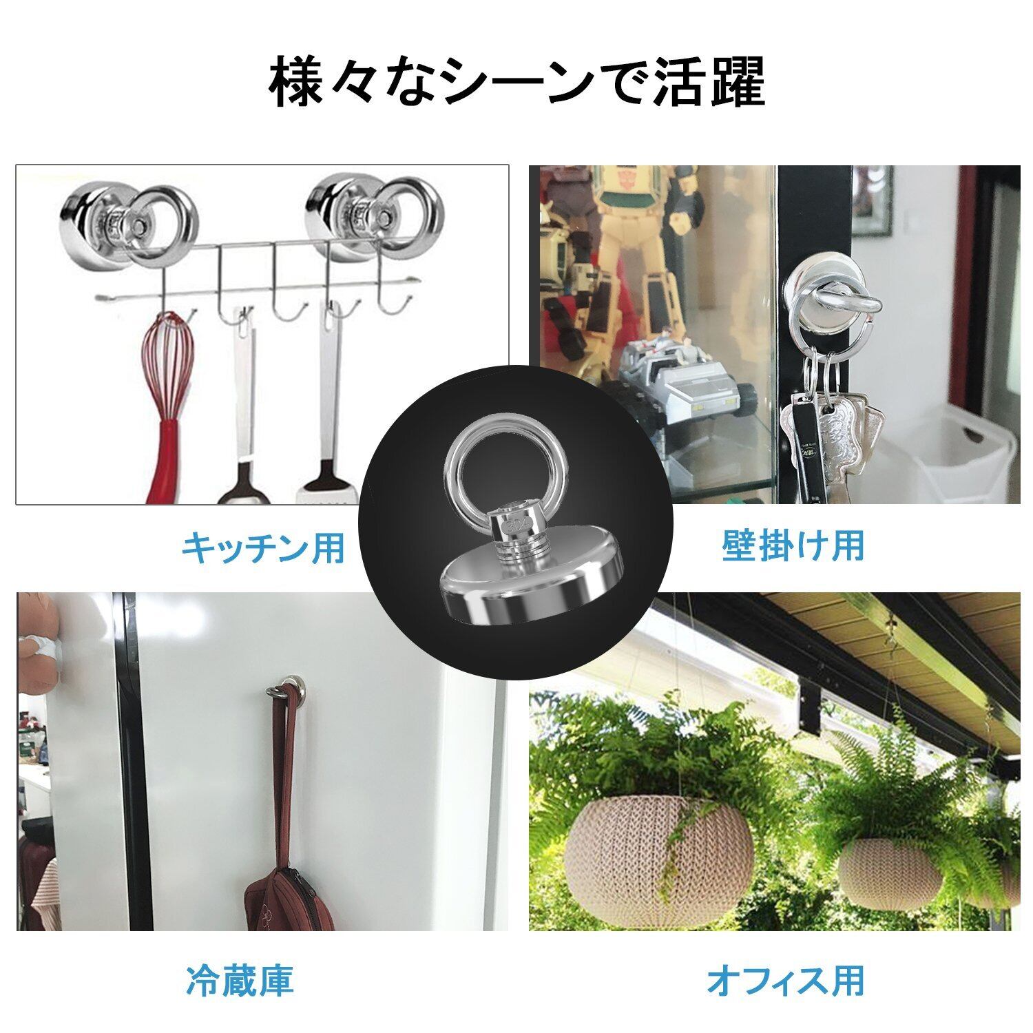 【様々なシーンで活躍】キッチン収納だけではなく、バスルーム、寝室、ロッカー、オフィス、冷蔵庫、倉庫、ロッカーなどに使用できます。ループフックが付いたマグネットので、ループにロープを通して取っ手代わりに重い物を持ち上げるのに重宝してます。完璧な収納フック!