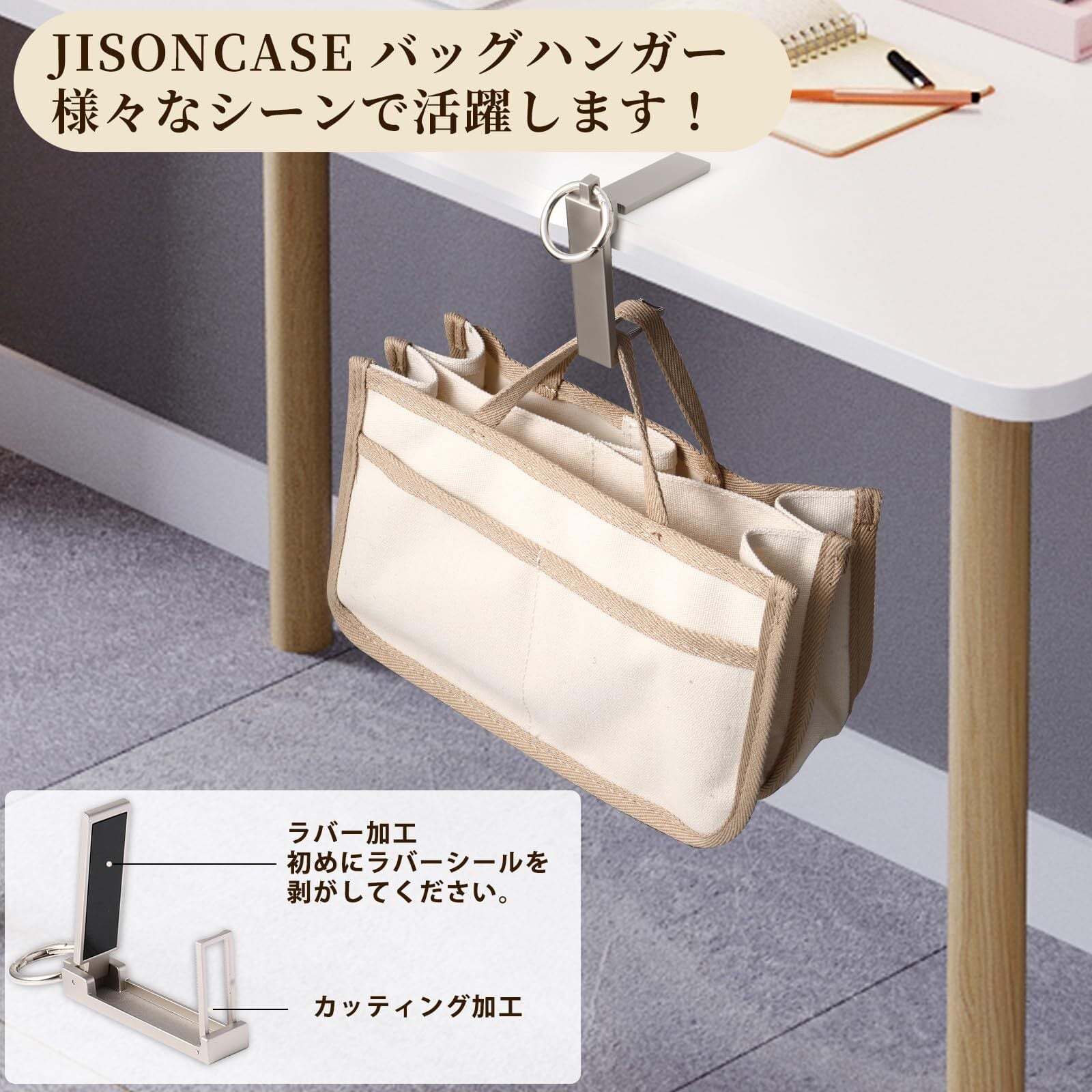 JISONCASE 【2025新登場】 バッグハンガー カバン掛け フック 耐荷重18㎏ バッグフック リュック掛け 万能バッグハンガー スマホスタンド機能付き キーホルダー デスクホルダー コンパクト 軽便 オフィス 出張 旅行 外出用 お持ち運び便利 (1, マットシルバー)